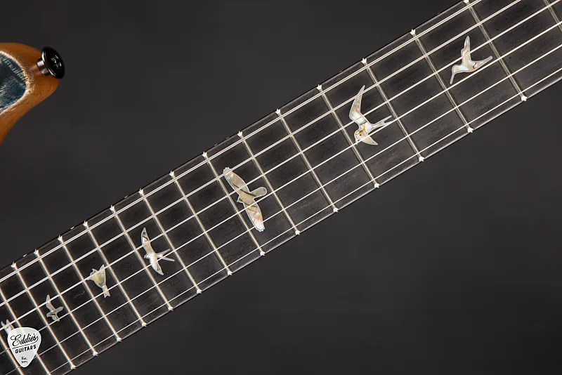 Особенно примечательно, что в этой ограниченной серии классическая кленовая дека Custom 24 заменена на выразительный топ из мангового дерева. Манговое дерево сохраняет большинство акустических характеристик клена, при этом придавая гитаре почти «стеганый» вид. Сатинированная нитро-отделка усиливает уникальную эстетическую привлекательность гитары, придавая инструменту более естественную атмосферу - а также обеспечивая отличное ощущение при игре и резонансное звучание. Накладка на гриф и шпонированная наклейка на головке грифа сделаны из эбена и украшены традиционными птицами PRS «Old School» с контурами, а на головке расположена орлица PRS «Pre-Factory», что отдает дань уважения ранним гитарам PRS.