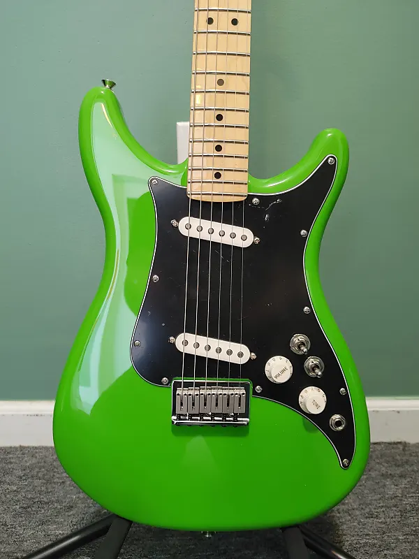 Player Lead II отдает дань уважения моделям конца 70-х годов, оснащен двумя косыми одноножковыми звукоснимателями серии Player, современной формой шеи «C» с медиум-джамбо ладями, двойными переключателями (один для выбора звукоснимателя, другой для реверса фазы), и, конечно, уникальной формой корпуса Lead с двойным вырезом. Доступен в неоново-зеленом, а также в винтажно-корректных цветах Crimson Red Transparent и Black.