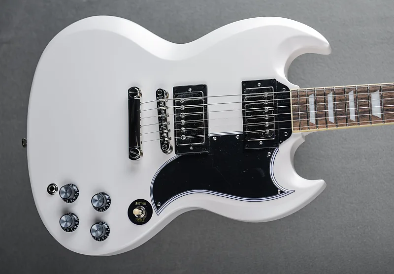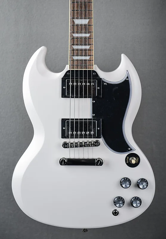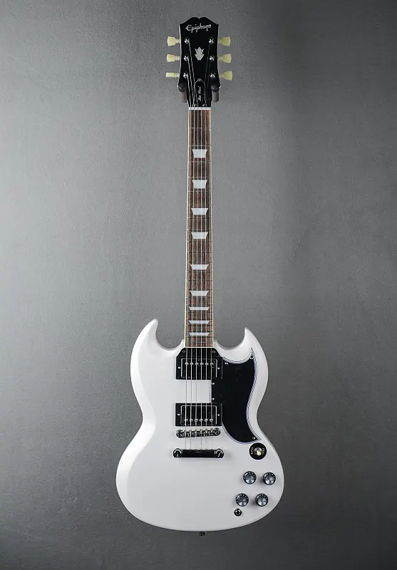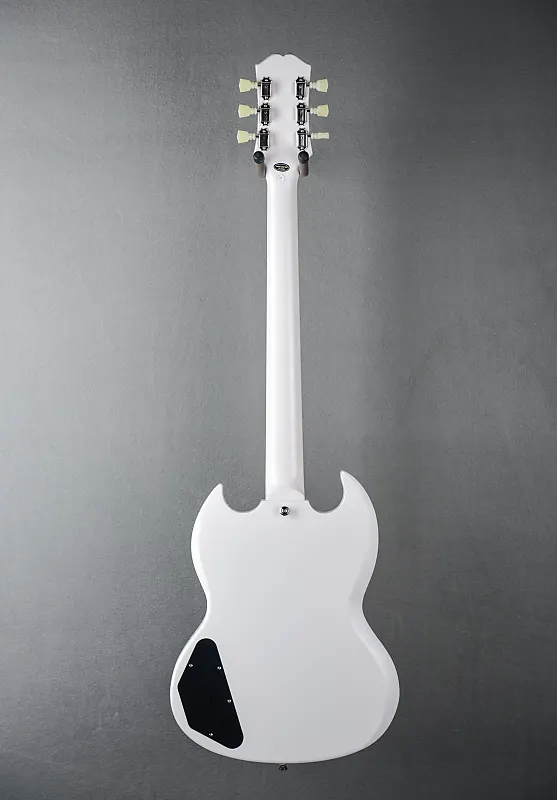 «Созданная в сотрудничестве с Gibson Custom Shop, эта модель Inspired by Gibson является впечатляющей реконструкцией одной из самых важных и популярных моделей гитар всех времен. Epiphone 1961 Les Paul SG Standard отдает дань уважения легендарной оригинальной модели - самой первой SG. В 1961 году оригинальная форма модели Les Paul была временно снята с производства и заменена совершенно новым дизайном, который сегодня известен как SG или «solid guitar» (твердая гитара). Оснащенная корпусом из цельного двухсекционного махагона с двойным вырезом и историческими скосами Custom Shop, она также имеет цельный махагоновый гриф с профилем SlimTaper C, обеспечивающий быструю игру, как у легендарных ранних моделей Les Paul SG. Также гитара оснащена исторически вдохновленной длинной накладкой на верхнюю дека и комплектуется парой хамбакеров Gibson BurstBucker, подключенных к потенциометрам CTS и конденсаторам Mallory, гайкой Graph Tech, а также разъемом Switchcraft и переключателем-toggle. Колки Epiphone Deluxe имеют исторически вдохновленное двойное кольцо.» дизайн. Он доступен в цветах Aged Sixties Cherry и Aged Classic White. Конечно, все легендарные элементы стиля SG и декоративные детали также присутствуют, а также включен футляр vintage-стиля.