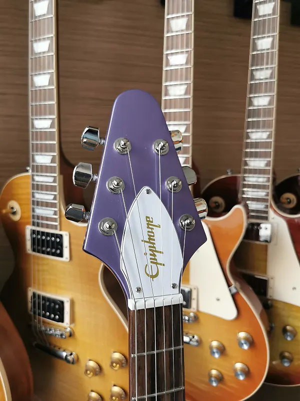 Фанаты Metallica по всему миру знакомы с Flying V 1979 года Кирка Хэмметта. Это была первая гитара Gibson у Кирка, и она укрепила его страсть к гитарам Gibson. Ее покупка была вдохновлена знаменитыми исполнителями на Flying V, которых Кирк восхищался, и тем, что он искал более насыщенный звук. И какой это звук! Кирк играет на своей оригинальной гитаре и по сей день, и использовал ее на всех ранних альбомах Metallica, включая Kill ‘Em All, Ride the Lightning, Master of Puppets, …And Justice for All и The Black Album, делая ее одной из самых значимых гитар в мире хэви-метала. Теперь Epiphone сотрудничает с Gibson Custom Shop, чтобы выпустить Epiphone Kirk Hammett 1979 Flying V - тщательную копию оригинальной ценной гитары Кирка. Она оснащена корпусом из махагона, цельным грифом из махагона с волютой, механикой Grover Rotomatic с кнопками в форме «пики» и фирменным мостом. Электроника также на высшем уровне: пара датчиков Gibson USA Calibrated T-Type humbucker, подключенных к потенциометрам CTS, и усилитель Orange.