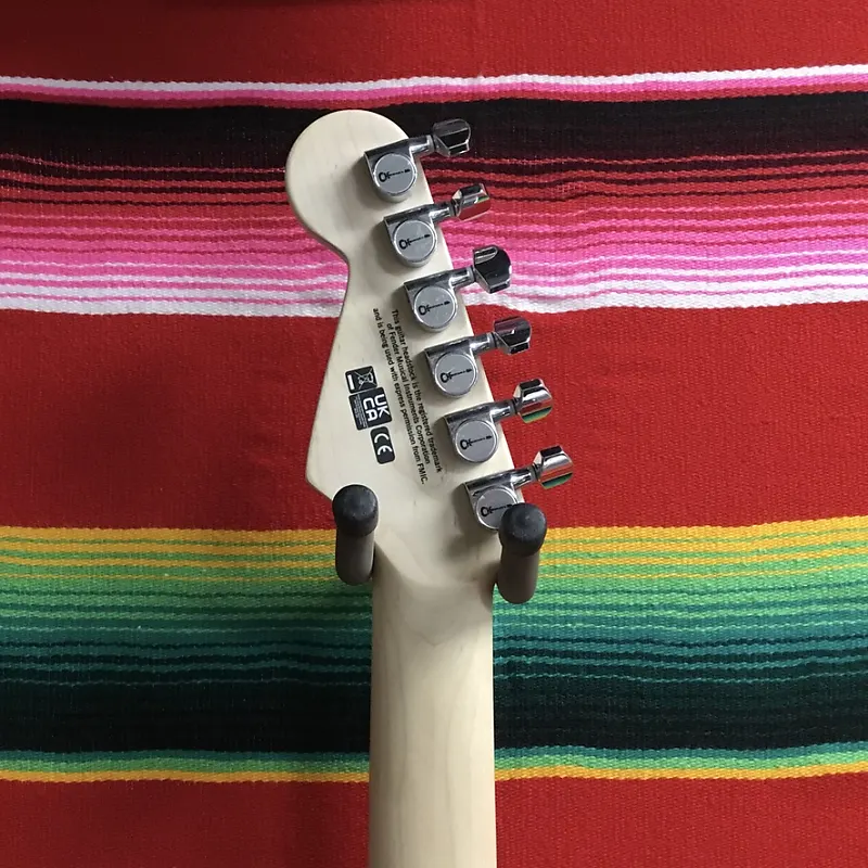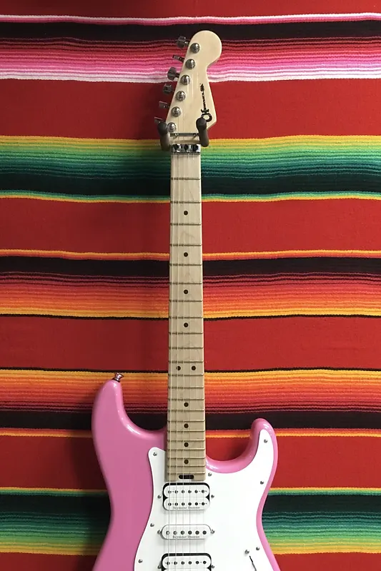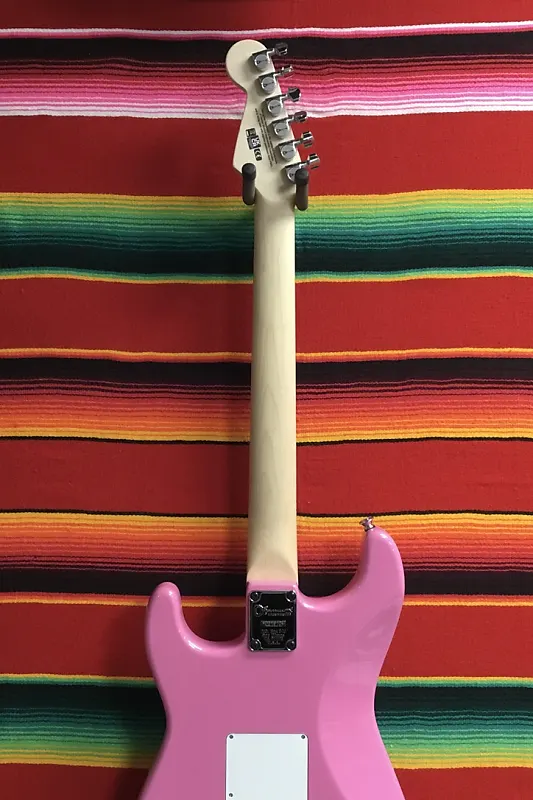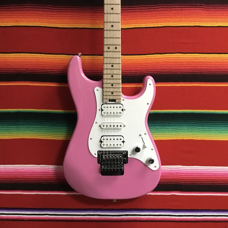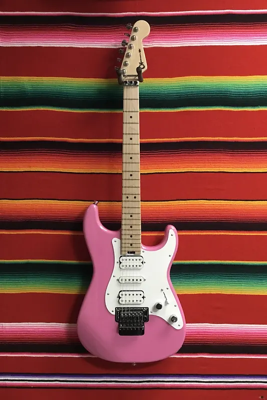 Charvel Pro-Mod So-Cal Style 1 HSH FR в цвете Platinum Pink. Корпус из ольхи. Гриф и накладка из клена с профилем Speed Neck и закругленными краями. Замок для струн Floyd Rose 1000 Series шириной 1,6875". Радиус накладки 12"-16". Длина мензуры 25,5". Звукосниматели: 1x Seymour Duncan Distortion TB-6 мостовой, 1x Seymour Duncan Flat Strat средний, 1x Seymour Duncan Distortion SH-6N на грифе. Регулировки громкости и тембра без нагрузки. 5-позиционный переключатель. Тремоло Floyd Rose 1000 Series Double Locking с рычагом. Сумка или футляр отсутствуют.