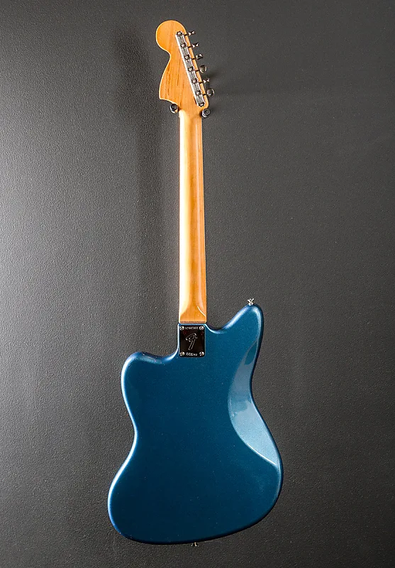 Lake Placid Blue с совпадающей головкой грифа, корпус из ольхи, финиш из глянцевого нитроцеллюлозного лака, шейка из клена формы C 1966 года Гриф, радиус 7,25 дюйма, круглая ламинированная накладка из розового дерева с блоками инкрустации из перлоида и винтажными высокими ладами, длина мензуры 25,5 дюйма, ширина верхнего порожка 1,650 дюйма, сингл-кухня Pure Vintage '66 для Jazzmaster, 3-позиционный тумблер с регуляторами громкости и тембра, а также регулировками цепи ведущего сигнала (переключатель вниз): общий громкость, общий тембр; управление ритм-цепью (переключатель вверх): два колесика для громкости и тембра грифа, мост Pure Vintage Jazzmaster с резьбовыми стальными седлами, плавающий тремоло Pure Vintage с кнопкой блокировки тремоло и выдвижной ручкой, механики Pure Vintage Fender deluxe с одной линией, вес 8,2 фунта, с жестким кейсом.
