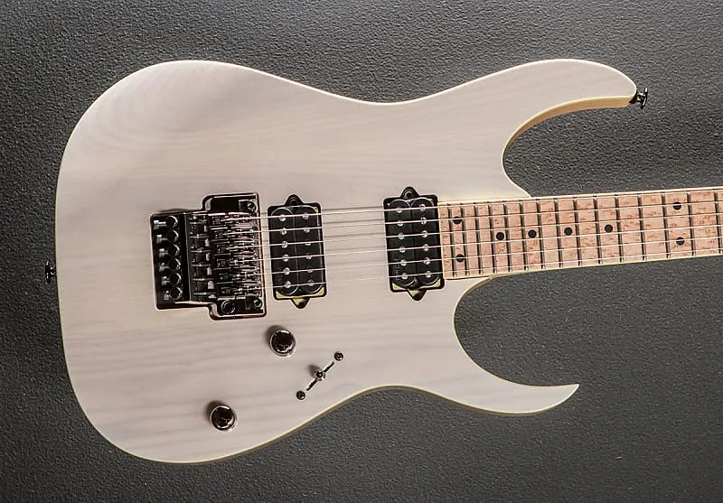 Античный белый блонд, сделано в Японии, корпус с глянцевой отделкой, верх корпуса из ясеня с окантовкой, шея Super Wizard HP из пяти частей клена/ореха с окантованной грифовой доской Birdseye Maple радиусом 17" и джамбо ладов, мензура 25,5", ширина порожка 1 11/16", бридж DiMarzio “The Tone Zone” и звукосниматели DiMarzio “Air Norton” для шеи, 5-позиционный переключатель с основными регуляторами громкости и тембра, тремоло Edge с фиксатором и колки Gotoh MG-T с фиксатором, вес 9,2 фунта, с жестким кейсом