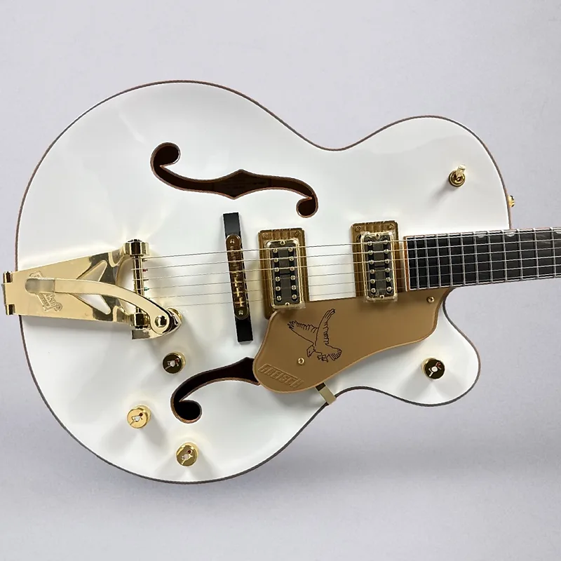 Одетый в белый цвет Snowcrest White с золотой блестящей отделкой, этот полый корпус представляет собой чистое сценическое присутствие. Но дело не только во внешнем виде - Synchromatic Falcon обеспечивает такой тон и удобство игры, которые удивляют вас с первого удара. Благодаря модернизированным полудуговым креплениям, мосту Adjusto-matic на основе черного дерева и более длинной 25,5-дюймовой шкале он способен работать намного выше своего класса.