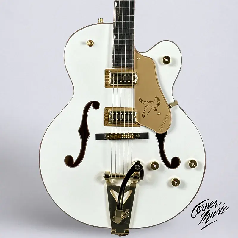 Кроме того, есть звукосниматели - Hi-Fidelity Filter'Trons от Gretsch - привносящие тот легендарный блеск, тепло и остроту, которые определяли хамбакеры конца 50-х годов. Добавьте к этому выразительное вибрато Bigsby B60, ручки с драгоценными камнями, золотое плексигласное плексиглас гард, колки Grover, и у вас есть гитара, которая привлекает взгляды еще до того, как вы сыграете первый аккорд.