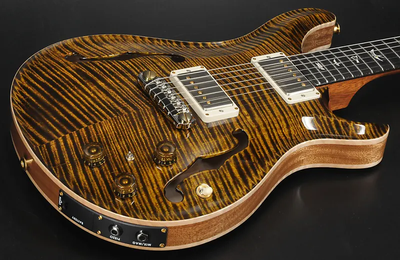 Система LR Baggs/PRS Piezo установлена стандартно, предоставляя музыкантам возможность использовать как акустические, так и электрические гитарные тона в одном инструменте. У Hollowbody II Piezo есть два выхода, что позволяет гитаристам подключаться к любимым усилителям для электрогитары или акустической гитары, а также напрямую к микшеру. С помощью отдельного регулятора смешивания можно также комбинировать звук звукоснимателей 58/15 LT с акустическим звучанием через один выход.