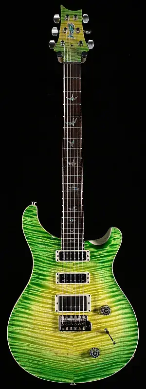 Особенности: Высокоглянцевая нитро-отделка, верхняя дека из кудрявого клена, задняя дека из Swamp Ash и шея из кудрявого клена, окрашенная под тон грифа. Особенности включают гриф из бразильского палисандра, инкрустации птиц Пауa с контуром из белого перламутра, орел Paua Private Stock Вставка на головке грифа с белым контуром из перламутра, задние пластины из болотного ясеня, накладка на тремоло из кудрявого клена и никелированная фурнитура. Деревья для этой гитары были выбраны дилером вручную из хранилища PRS Private Stock. Эта гитара была произведена исключительно для США.