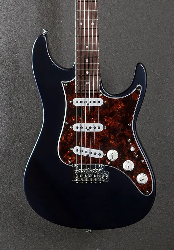 Dark Tide Blue Flat, Сделано в Японии, корпус из ольхи, гриф AZ овал C из древесины S-Tech с запеченным кленовым грифом, накладка из розового дерева с радиусом от 9" до 12", инкрустация из перламутровых точек и лады из нержавеющей стали jumbo, длина масштаба 25,5", ширина коронки 1 5/8", звукосниматели Seymour Duncan Fortuna S single coil, 5-позиционный переключатель с регуляторами громкости/тембра и смесителем звукоснимателей, тремоло Gotoh T1502S и колки Gotoh Magnum с блокировкой, вес 7,8 фунтов, в жестком чехле