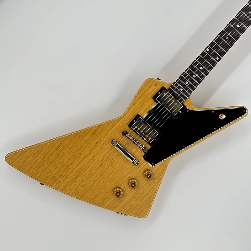 Реиздание легендарного Explorer 1958 года из корины! Корпус из корины, гриф из корины, накладка грифа из розового дерева с массивным профилем 58 и пара звукоснимателей Gibson Custombuckers.