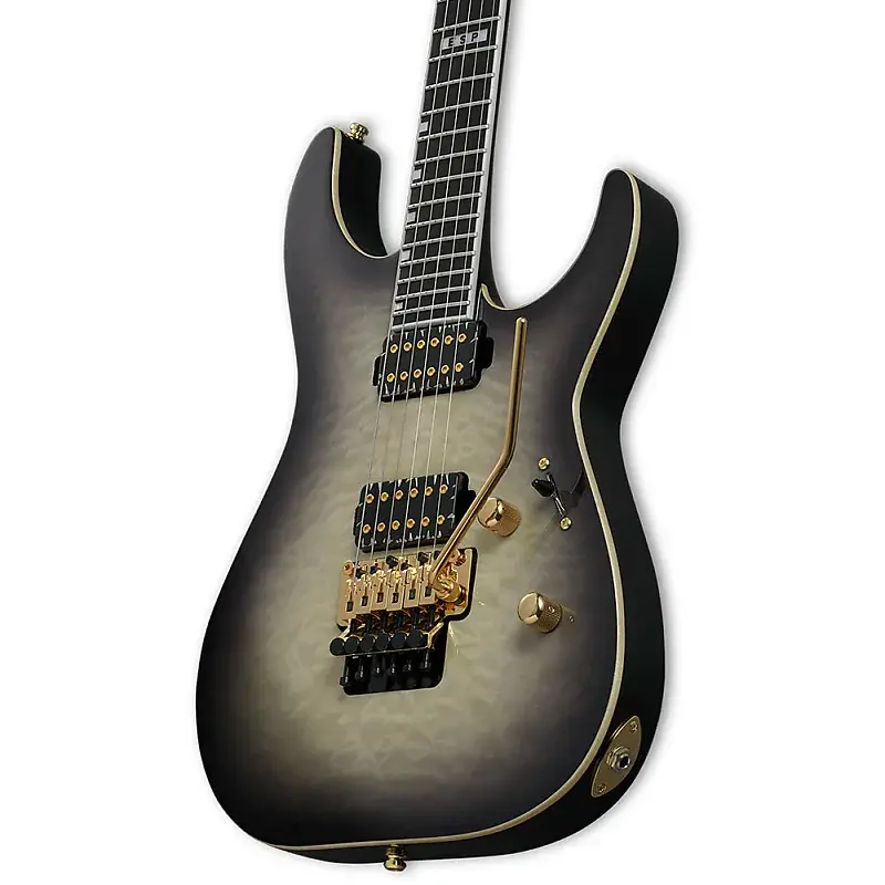 Модель E-II M-II Black Natural Burst включает высококлассные компоненты, такие как золотая фурнитура, двухзамковый мост Floyd Rose Original, замковые колки Gotoh и замки для ремня ESP. Эта выдающаяся гитара также оснащена комплектом напрямую установленных звукоснимателей Bare Knuckle Aftermath с черными корпусами Battleworn и золотыми болтами, обеспечивающими ускоренный отклик басов для исключительно быстрой обработки высокоскоростных стаккато риффов, а также выдающейся серединой и точной артикуляцией высоких частот. Ручка управления тембром с функцией push-pull позволяет разделять катушки.