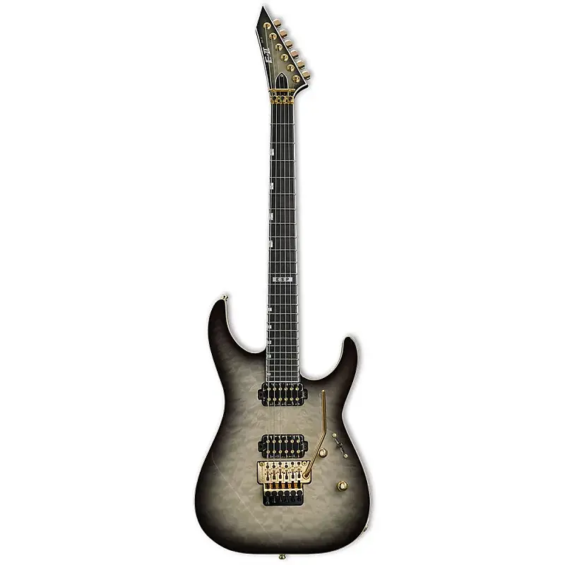 Электрогитара ESP E-II M-II QM Black Natural Burst E-II M-II QM/BLKNB, Сделано в Японии! Серия ESP E-II, Мензура 25,5”, Премиальные породы древесины, Верх из кленового шпона, Трехсекционная шейка из клена через корпус, Корпус из ольхи, Гриф из эбена, Звукосниматели BareKnuckle Aftermath, Мост Floyd Rose Original, Замки для ремня ESP, Золотая фурнитура, Совпадающая голова грифа, Глянцевое покрытие Black Natural Burst, В комплекте жесткий кейс ESP