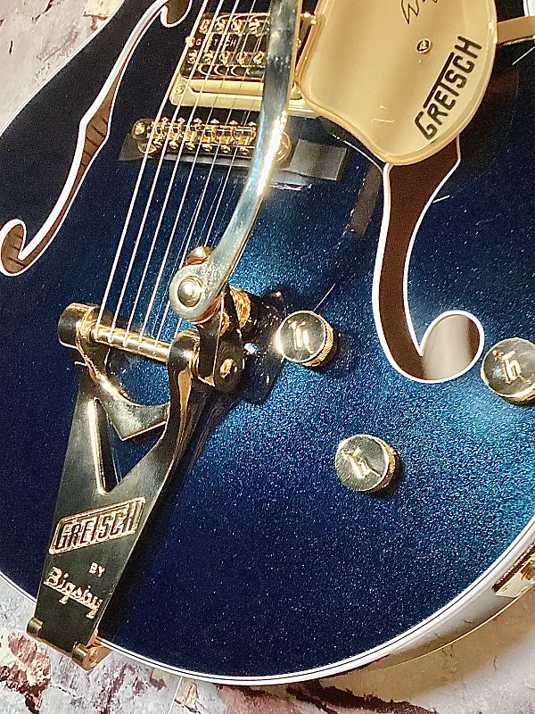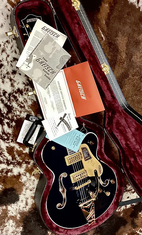 конденсаторСтрунодержатель Bigsby B6GP с вибратоМост Adjusto-Matic на прикрепленной основе из черного дереваГрифовая подставка Graph Tech TUSQ XLЗажимные колки GotohФиксаторы ремня GroverКорпус G6241 Gretsch 16" deluxe hollow body с жестким футляром включенОсобенности