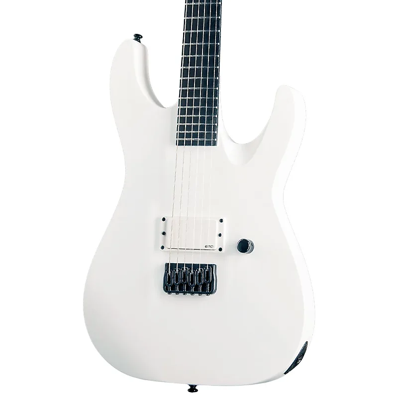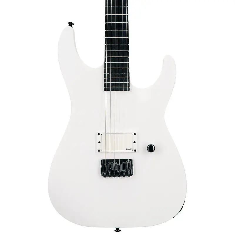 Гриф выполнен из эбена Маккасар с 24 сверхбольшими ладами из нержавеющей стали для максимальной удобства игры.Звукосниматель - агрессивный EMG 81TW с двойным режимом. Это инновационный активный трехкатушечный дизайн, что означает, что звук одной катушки также бесшумен. Звукосниматель и монтажное кольцо белого цвета, а на звукоснимателе есть черный логотип. Один регулятор громкости с функцией push-pull позволяет использовать режим разделенной катушки. Другие особенности включают мост Hipshot с конструкцией через корпус и блокирующие колки LTD.Технические характеристикиТОЛЬКО ДЛЯ США: