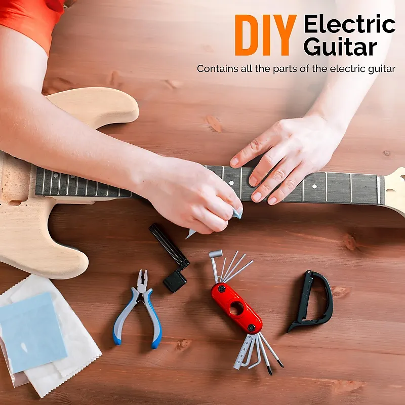 Эта электрогитара для самостоятельной сборки глубоко отполирована, но полностью незавершенный, чтобы вы могли покрасить, покрыть морилкой, лаком или закончить гитару по вашему желанию. Если ваш ребенок любит гитару, это также может быть хорошим подарком, чтобы вдохновить детей на творчество.
