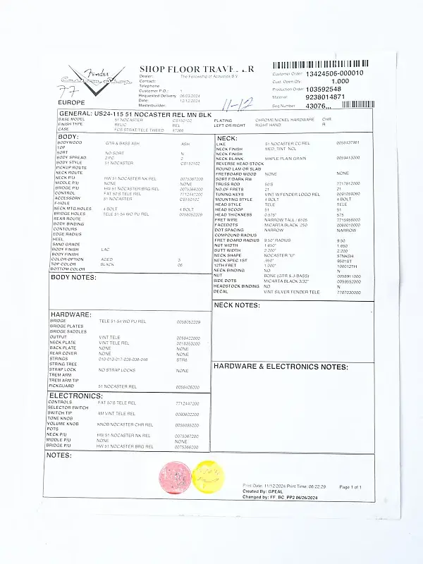 близки к оригиналам. Вот почему вы до сих пор можете увидеть Telecaster на любой сцене!Гитара поставляется с паспортом TFOA в жестком кейсе.