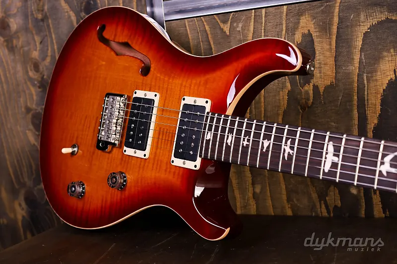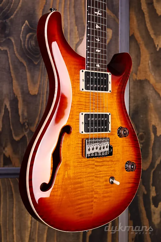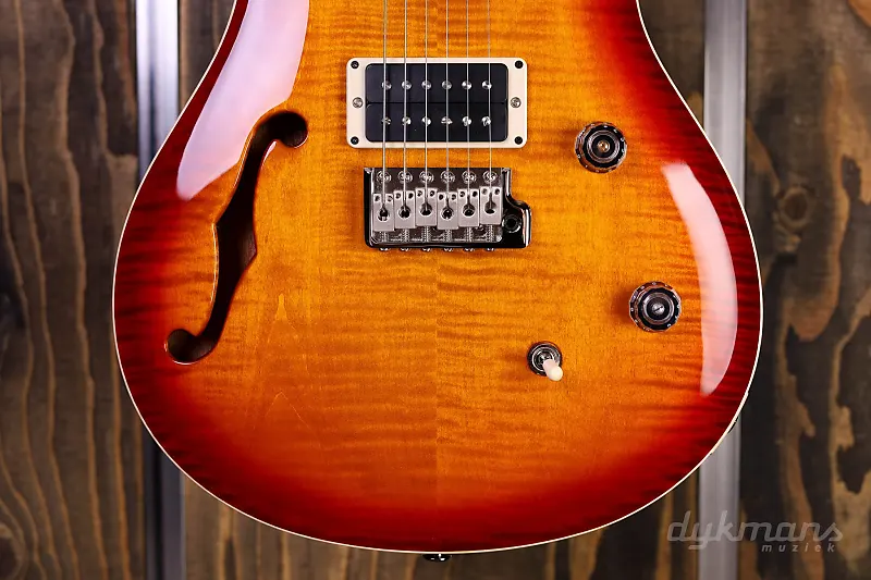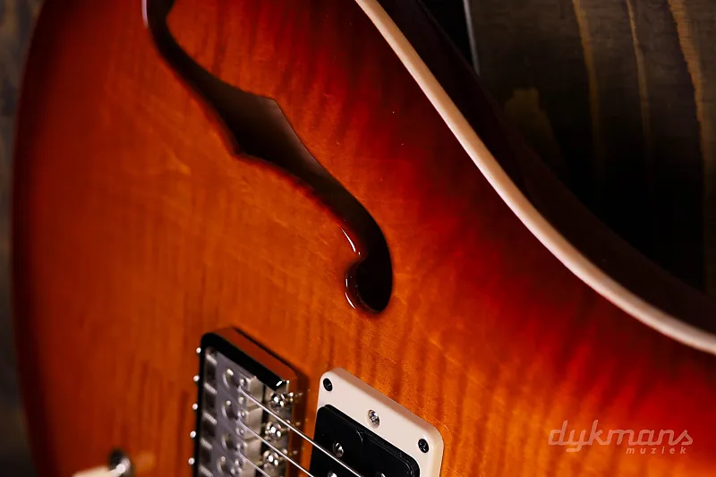 Великолепно. Это первое слово, которое приходит нам на ум при виде этой PRS CE24 Semi-Hollow Dark Cherry Sunburst! Эта модель является вариацией стандартной CE24, которая была представлена Полом Ридом Смитом в 1988 году, чтобы объединить классический и высококачественный дизайн PRS с так называемой snap и sparkle инструментов с прикрученной грифом. CE24 Semi-Hollow остается верной этой теперь уже традиционной концепции, и эта модель также оснащена корпусом из красного дерева с верхом из клена, прикрученной кленовой грифой, красивой накладкой из розового дерева и традиционной мензурой PRS 25 дюймов. Однако благодаря полу-резонансной конфигурации этого исполнения гитара приобретает иной характер по сравнению со своим цельномассивным аналогом. Ноты звучат как никогда раньше, и ваша игра выходит еще красивее и естественнее на первый план. В целом звучание буквально ощущается более воздушным и, возможно, резонирует еще сильнее, и это Конечно же, именно то, что вы хотите от полуакустической гитары. Также удобство игры здесь на высшем уровне. Благодаря грифу с 24 ладами даже самые высокие ноты легко достигаются, что обеспечивает очень комфортное ощущение при игре, особенно в сочетании с быстро играющим профилем грифа Pattern Thin. Звукосниматели 85/15 - это те же элементы, что мы также находим в Core Custom 24, и вы понимаете, что качество на высоте. Эти звукосниматели известны своим прекрасным чистым звуком с отличным разрешением, плотным басом и сверкающими высокими частотами. Даже самые перегруженные звуки остаются управляемыми, а чистый звук никогда не был таким красивым, как с этими звукоснимателями. А благодаря регулятору тембра push/pull вы можете переключать эти хамбакеры в режим с одной катушкой, получая еще больше тональных возможностей. И наконец, все это оформлено в натуральной сатиновой нитро лаковой отделке, которая позволяет дереву «дышать», что превращает эту гитару в подлинный PRS. В комплекте прочная сумка для переноски.