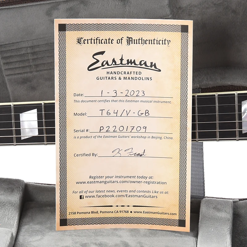 Общее: Марка: Eastman Тип футляра: Жесткий футляр Цвет фурнитуры: Состаренный никель Сделано в: Ручная работа в Пекине Цвет изделия: Золотой эффект (Goldburst) Степень старения: Антикварный Серия: Eastman Thinline