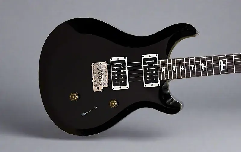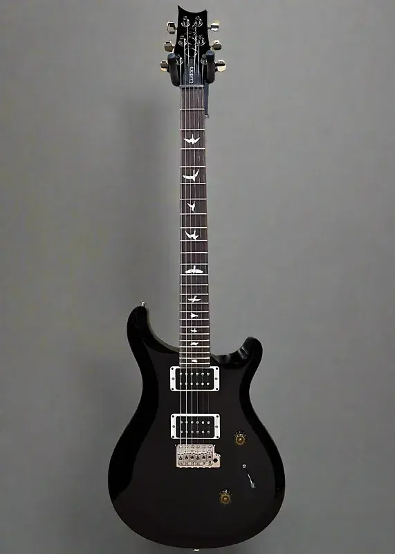 Black Noir, Ассиметричный скошенный верх из клена на корпусе из махагони, гриф Pattern Regular из резного махагони, накладка из палисандра с радиусом 10" и инкрустацией Bird, ширина верхнего порожка 1 21/32”, длина мензуры 25”, звукосниматели PRS 85/15 TCI у моста и у грифа, 5-позиционный переключатель с регуляторами громкости и тона, фирменное патентованное тремоло PRS и колки PRS с низкой массой и замком, вес 7.9 фунтов, в комплекте с черным чехлом PRS."