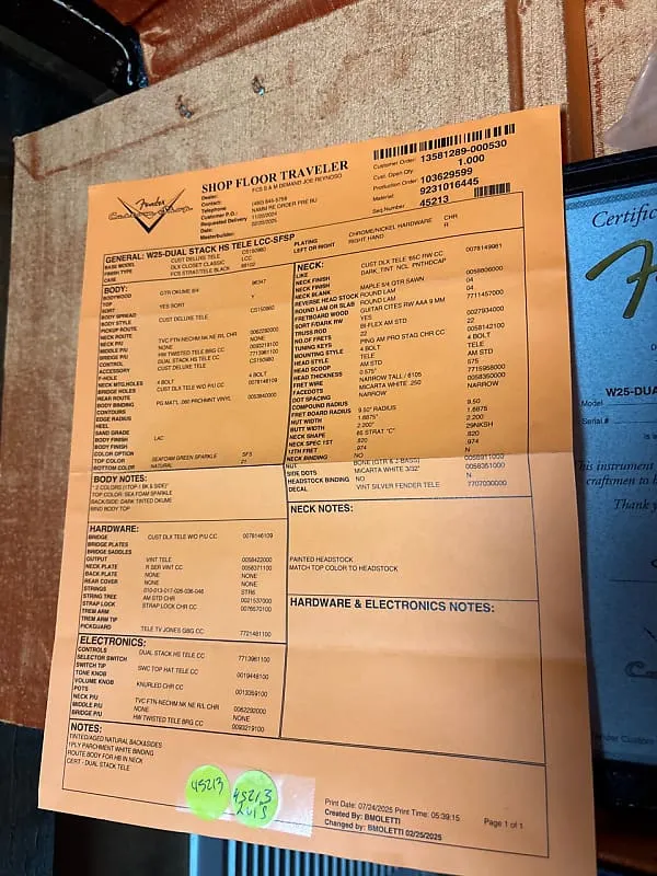 Deluxe Closet Classic. Верх с блестящей отделкой, задняя и боковые части из тонированного натурального окуме, датчик TV Jones Filtertron для гитары на грифе, ручной намотки скрученный датчик Twisted Tele для моста, проводка Dual Stack HS Tele.