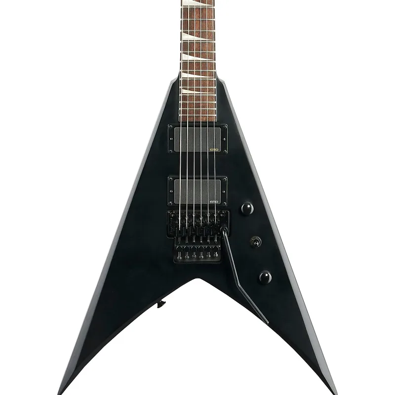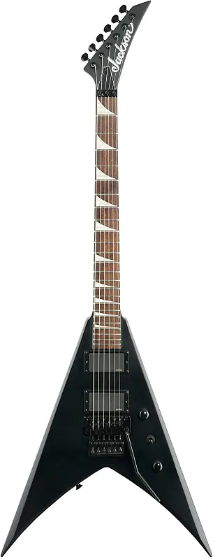Корпус Jackson X Series King V KVXMG из тополя сочетается с грифом из клена через весь корпус, оснащенным соединением scarf и графитовым усилением для максимально прочной стабильности, защищающей от изменений климата и влажности. С 24 джамбо-ладками и вставками из перлоида в форме акулий плавник, гриф с градуированным радиусом 12"-16" из лаврового дерева более круто изогнут у верхнего порожка для удобного аккордового звучания и выравнивается ближе к соединению грифа с корпусом для низкого действия при сгибах струн без приглушения звука.