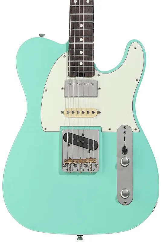 Электрогитара с цельным корпусом из ольхи, гриф из клена, грифовая накладка из палисандра, 2 сингловых звукоснимателя и 1 хамбакер - цвет морскойfoam зеленый.