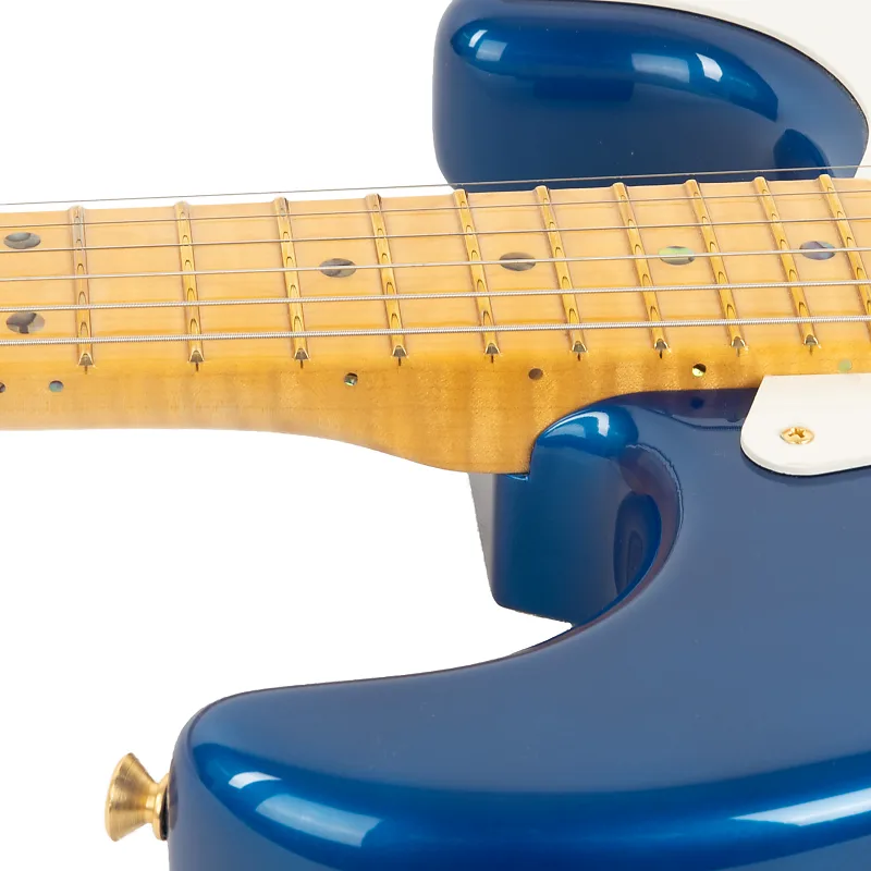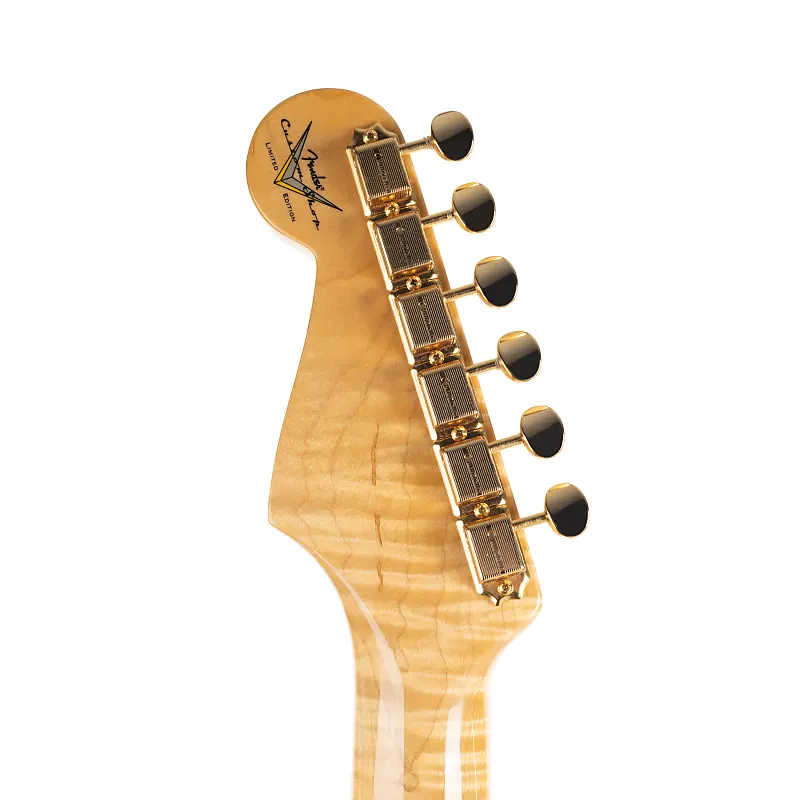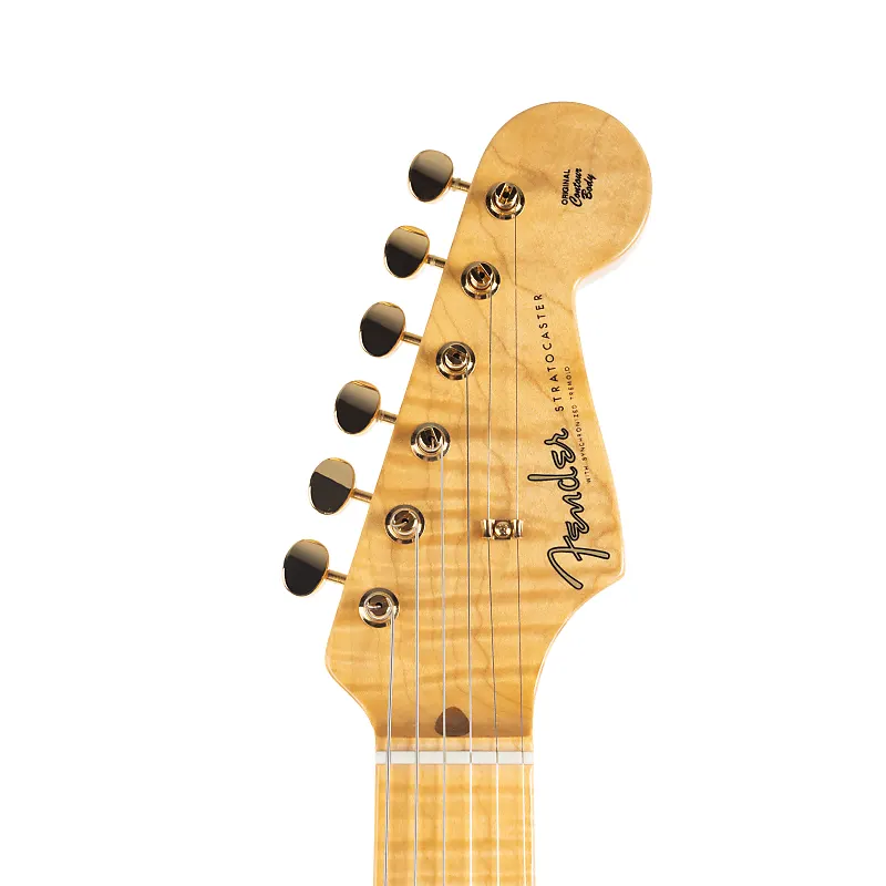 Цельный гриф из огненного клена 4A сам по себе является экспонатом; вылепленный с солидным, но удобным профилем 10/'56 Soft "V" и увенчанный грифом радиусом 9,5", он предлагает плавные изгибы и четкую фразировку. Лады Jescar Medium Vintage предлагают идеальное промежуточное ощущение - достаточно тонкое для тонкого контроля, но достаточно прочное для смелой работы с лидами. Эта гитара остается в тонусе и играет чисто благодаря костяной гайке, тюнерам в винтажном стиле и синхронизированному тремоло Custom Shop, обеспечивающему надежное исполнение и выразительный потенциал.