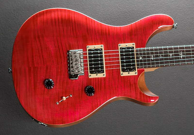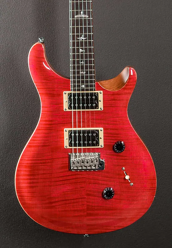 Бонни Пинк, верхняя дека из клена с фламированным шпоном клена, корпус из красного дерева, тонкая/широкая вырезанная кленовая шейка, грифовая накладка из палисандра радиусом 10 дюймов с инкрустацией в виде птиц, мензура 25 дюймов, ширина верхнего порожка 1 11/16 дюйма, звукосниматели 85/15 «S» в мостовой и грифовой позиции, 3-х позиционный переключатель с регулятором громкости и потенциометром тембра с функцией push/pull для раздельного включения катушек.» PRS запатентованное формованное тремоло и тюнеры, разработанные PRS, с чехлом для переноски