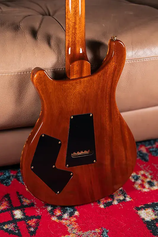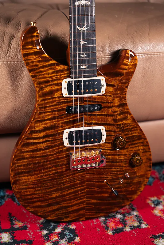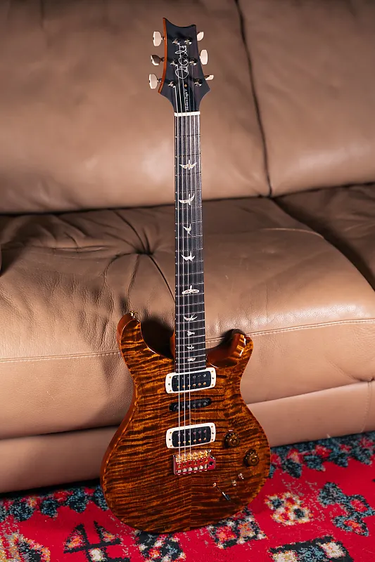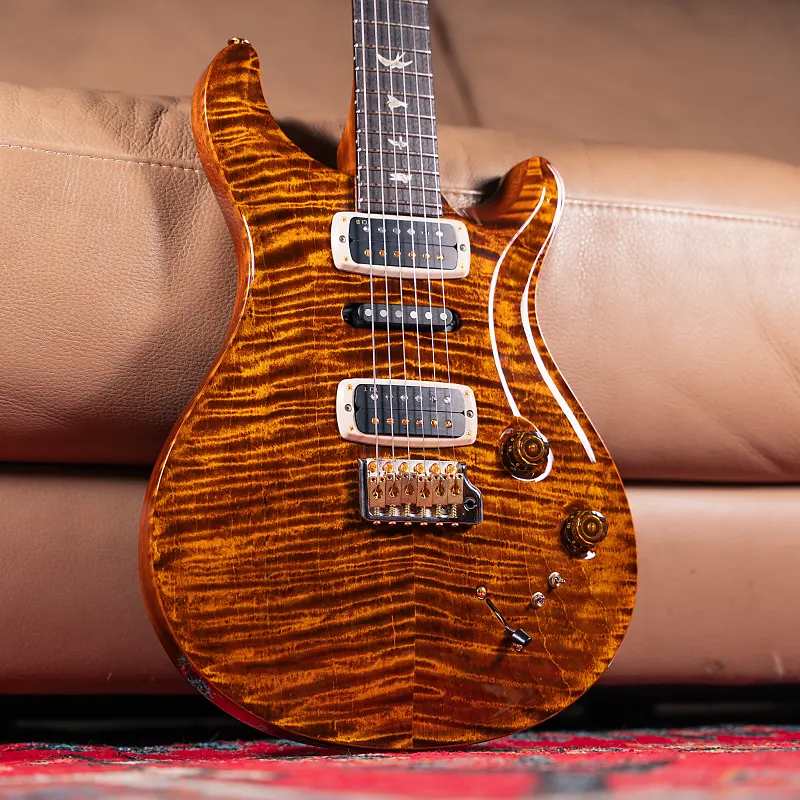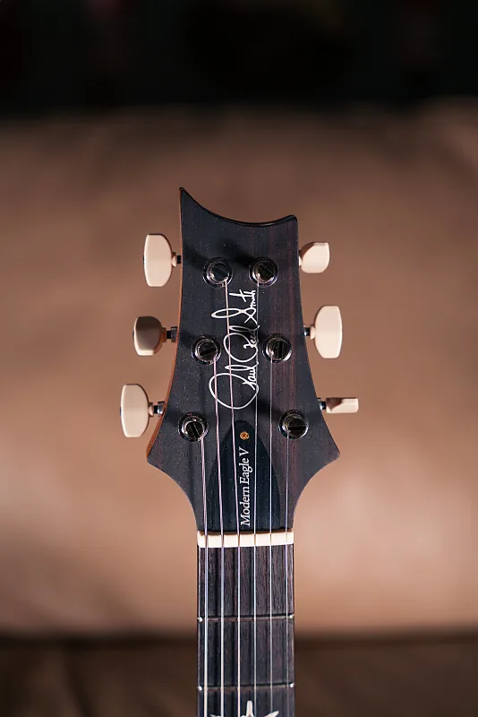 "Modern Eagle V предлагает очень музыкальные тона как для записи, так и для живых выступлений. Сочетая в себе классическое и современное, Modern Eagle V построен на проверенной основе: кленовая дека и корпус из красного дерева, 22 лада, мензура 25 дюймов, гриф Pattern из красного дерева с накладкой из палисандра, кость на верхнем порожке, колки PRS Phase III и фирменный тремоло PRS Gen III. Его инновационная конфигурация звукоснимателей и электроники предоставляет широкий диапазон тонов под рукой.