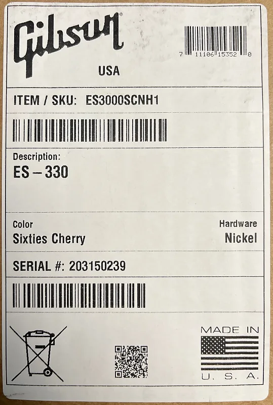 Gibson ES-330 2025 Sixties Cherry (6 фунтов 4 унции)