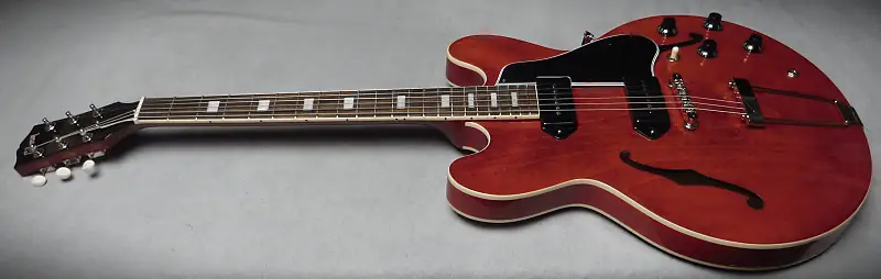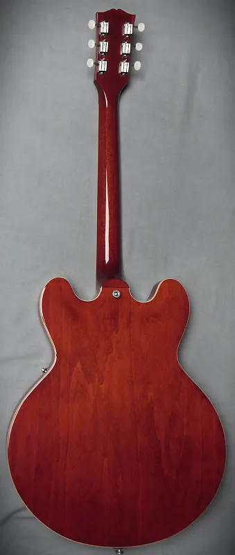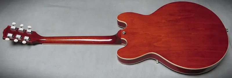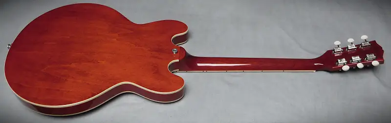 Gibson ES-330 заработала репутацию благодаря своему уникальному звучанию, удобству игры и классической эстетике, став любимым инструментом среди музыкантов, ищущих универсальную, вдохновленную винтажем электрогитару ES-стиля. Близкий родственник Epiphone Casino, ES-330 имеет аналогичный легкий полностью полый корпус с тонкой конструкцией, выполненный из трехслойного клена/тополя/клена. Он обладает выдающейся резонансностью и теплым звуком благодаря полому корпусу, трапециевидному хвостовику и глубоко установленной шее, создающей оптимальное расположение бриджа. Гриф из красного дерева имеет удобный профиль Rounded “C” и оснащен грифовой накладкой из розового дерева с акриловыми инкрустациями малых блоков и 22 средними джамбо ладов. Радиус грифа 12” одинаково удобен как при игре чистых и звонких аккордов у первого лада, так и при исполнении огненных соло с сильными изгибами струн на верхних ладах. Трапециевидный хвостовой блок добавляет визуальной и звуковой привлекательности ES-330, а полностью настраиваемый мост ABR-1 обеспечивает точную интонацию. Тюнеры Vintage Deluxe с белыми кнопками придают еще больше визуального шарма и вместе с порожком Graph Tech помогают удерживать строй этой облегченной полой гитары.