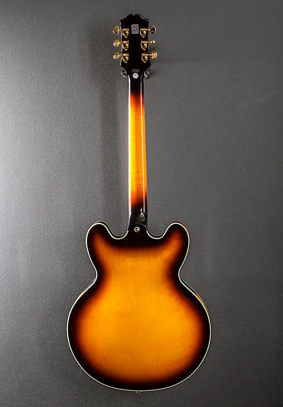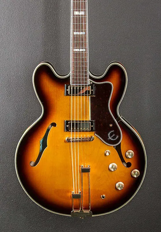 «Одна из самых известных гитар Epiphone, Sheraton возвращается в отделке Vintage Sunburst и Natural. Этот изысканный инструмент оснащен полуакустическим корпусом из слоистого клена с кленовым центральным бруском для защиты от обратной связи. Гриф из красного дерева с 22 ладами имеет накладку из индийского лавра с окантовкой и блоковыми накладками из перламутра с треугольными вставками из гелиотиса. Головка грифа с окантовкой украшена историческим логотипом Epiphone и деревом жизни из перламутра. Мини-хамбакеры Epiphone ProBucker обеспечивают широкий динамический диапазон, который подходит для почти любого музыкального стиля. Золотая фурнитура, включая хвостовую часть в стиле Vintage Frequensator Split Trapeze, подчеркивает простую и классическую эстетику этой легендарной гитары Epiphone.»