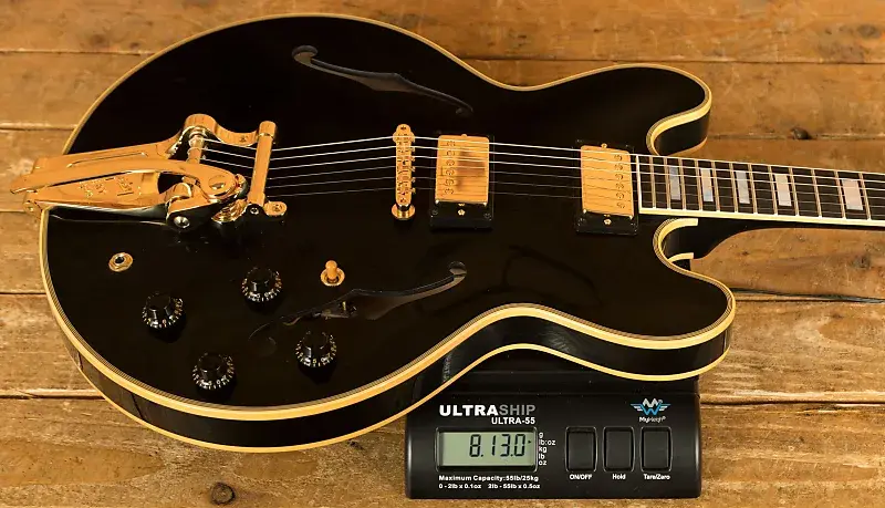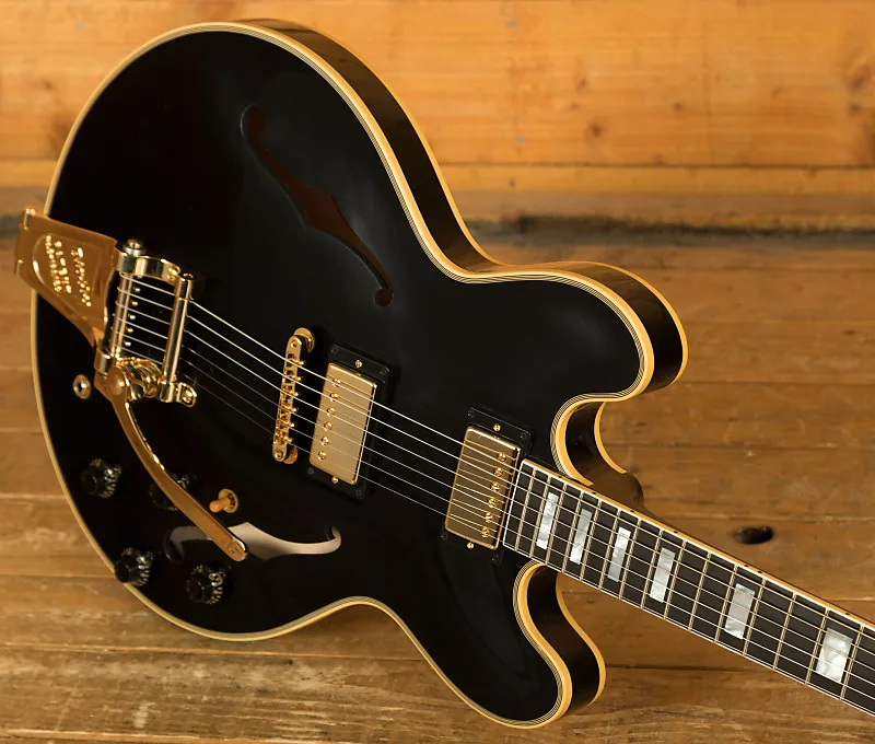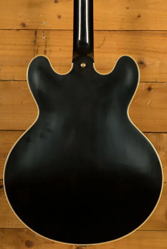 Она оснащена корпусом из трех слоев: клен/тополь/клен, покрытым элегантной, старой школы Ebony VOS. Обеспечивая богатый и аутентичный звук, эта ES-355 59 года обладает отличной резонансностью и прекрасно сбалансирована; она буквально источает очарование винтажного Gibson. Нитро VOS покрытие впечатляет и придает винтажный вид без видимых признаков износа.
