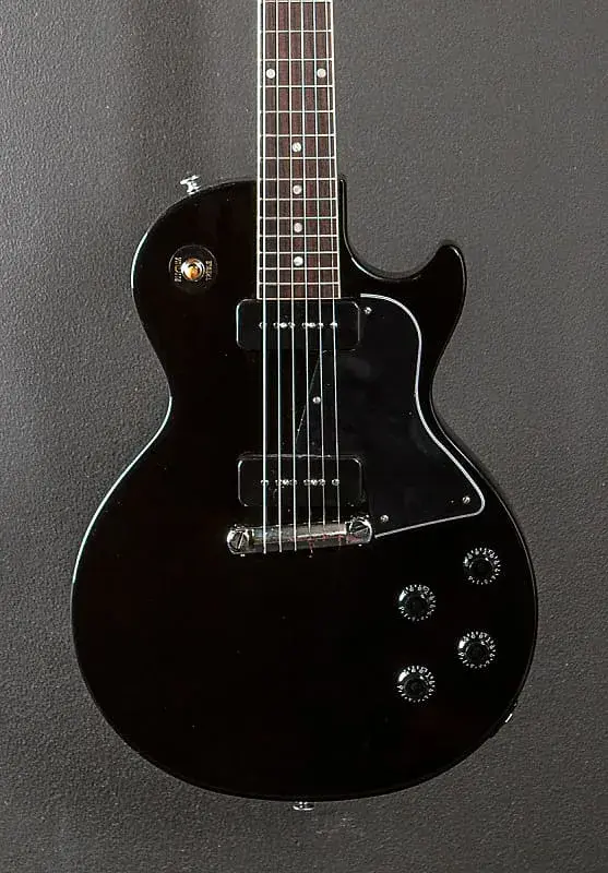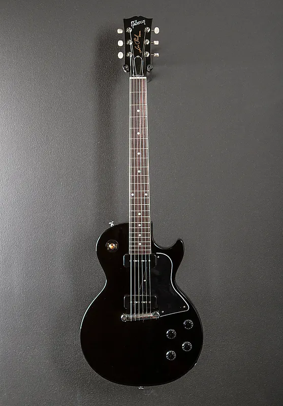 Гриф из красного дерева, глянцевое покрытие из нитроцеллюлозного лака Ebony, корпус из красного дерева, гриф в стиле винтаж 50-х с радиусом 12” и накладкой из розового дерева с акриловыми точечными вставками и средними джамбо ладами, длина мензуры 24,75”, ширина порожка 1,69”, звукосниматели P-90 на мосту и грифе, 3-позиционный переключатель с регуляторами громкости и тембра для каждого звукоснимателя, струнотриммер Wraparound, колки Gibson vintage deluxe, вес 7,4 фунта, в комплекте с жестким футляром