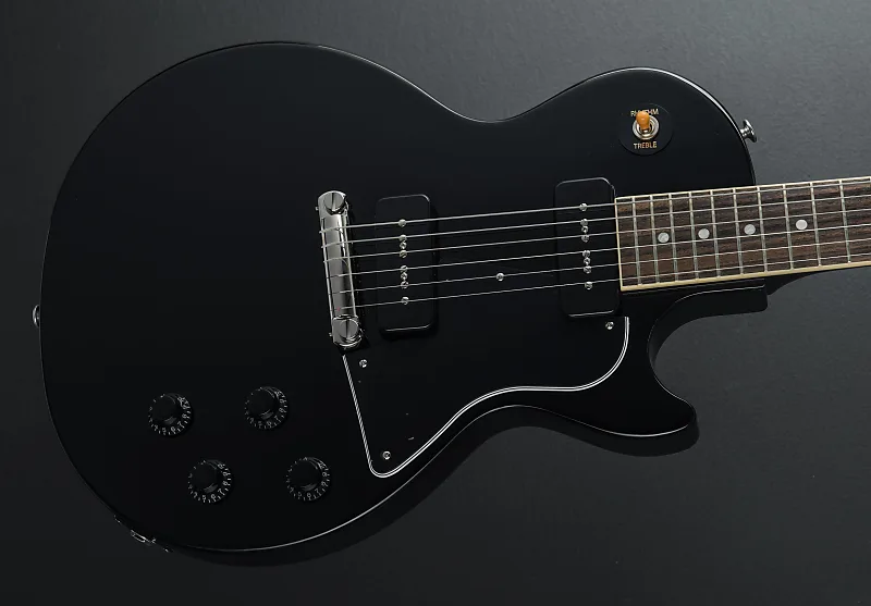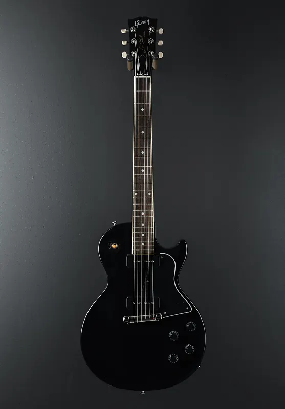 Эбеновое дерево, лак из глянцевой нитроцеллюлозы, корпус из махагони, гриф формы Vintage 50-х из махагони, накладка из палисандра с радиусом 12” с акриловыми точечными инкрустациями и средними джамбо ладами, длина мензуры 24,75”, ширина порожка 1,69”, датчики P-90 для бриджа и грифа, 3-позиционный переключатель с регуляторами громкости и тембра для каждого датчика, звонкая гитарная тремоло, тюнеры Gibson vintage deluxe, вес 7,3 фунта, в комплекте с жестким футляром