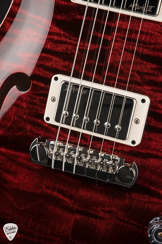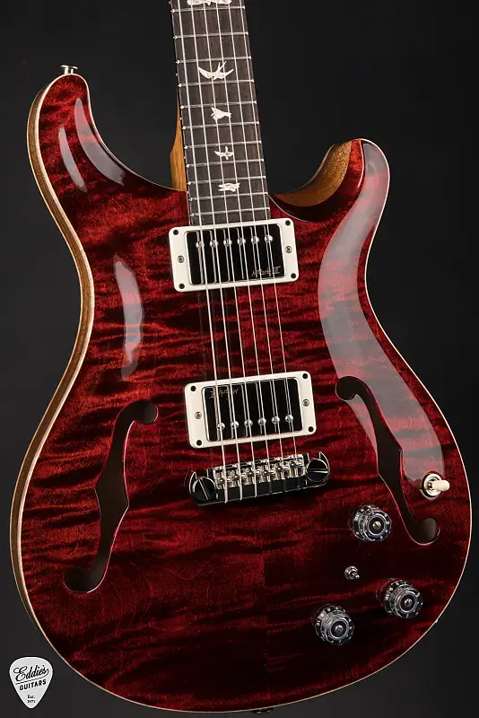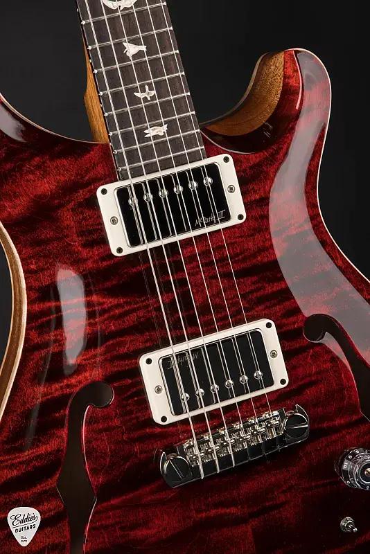 Аппаратные элементы включают в себя мост PRS Adjustable 'Piezo' Stoptail и колки PRS Phase III non-locking tuners with wing buttons, выполненные в стильной никелевой отделке, обеспечивая стабильность настройки и тональную консистентность. Дополнительные детали, такие как фирменный логотип на головке грифа, крышка подструнного бруса Hollowbody и премиальная PRS косточка, усиливают как эстетическую, так и функциональную привлекательность гитары.