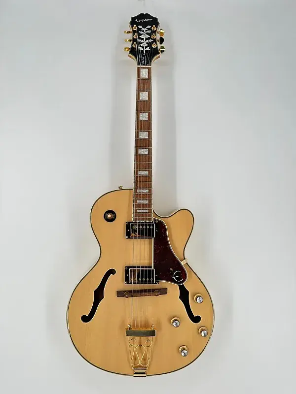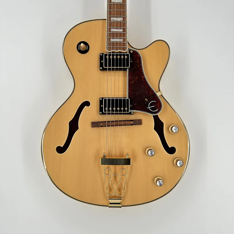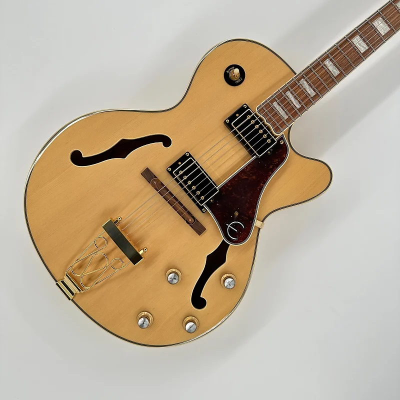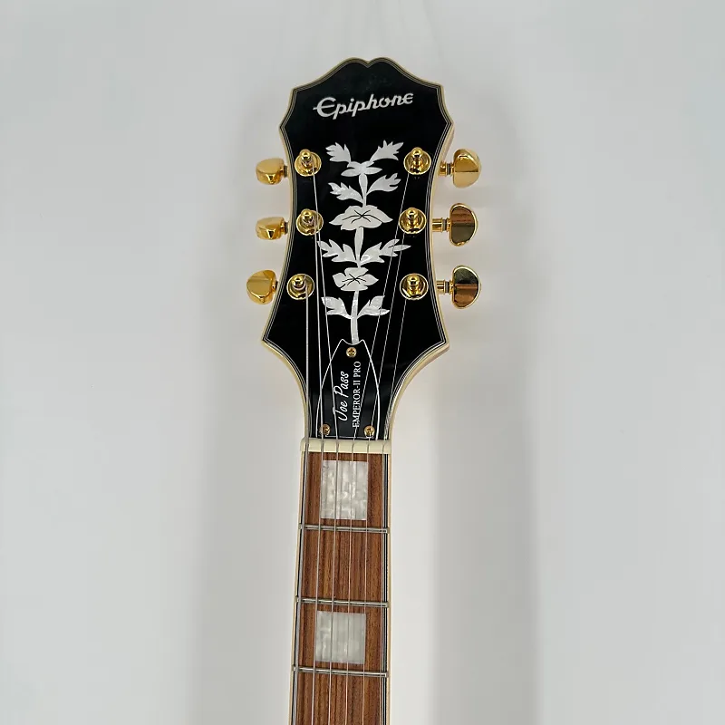 Верх из ели, корпус и боковые стороны из многослойного клена, гриф 60-х с узким сужением C, гриф из палисандра Pau Ferro, звукосниматели Epiphone ProBucker 2 и ProBucker 3, потенциометры с функцией push/pull для разделения катушек.