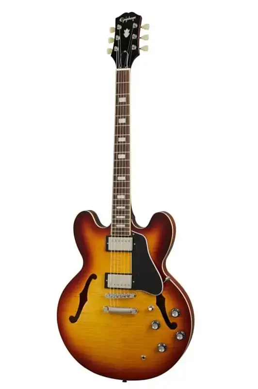 Эпифон "Inspired by Gibson" ES-335 Figured отдает дань уважения бессмертной ES-335, тонкой полуакустической арchtоп-гитаре, которая принесла класс арchtop-гитар в эпоху рока. Оснащена массивным кленовым центральным бруском для увеличения сустейна и устойчивости к фидбеку, хамбакерами Alnico Classic PRO, колками Grover Rotomatic, а также кленовыми шпонами на верхней и задней деке с эффектным глянцевым покрытием Blueberry Burst и Raspberry Tea Burst, которые наверняка привлекут внимание.