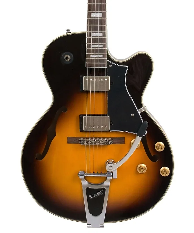 Полуакустическая электрогитара с вырезом. Верхняя дека из ели. Обечайки и задняя дека из клена. Гриф из канадского клена, вклеенный. Грифовая накладка из палисандра. 20 ладов. Длина мензуры 24,75 дюйма. Колки Vintage. Мост Bigsby B60. Звукосниматели ClassicRocker II. Конфигурация HH. Хромированные элементы. Отделка Tabacco Burst. Чехол в комплекте.