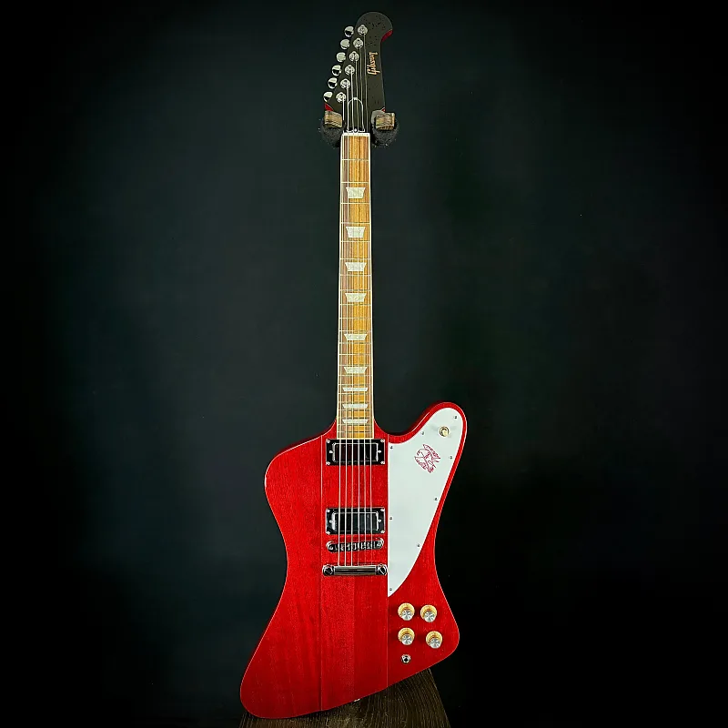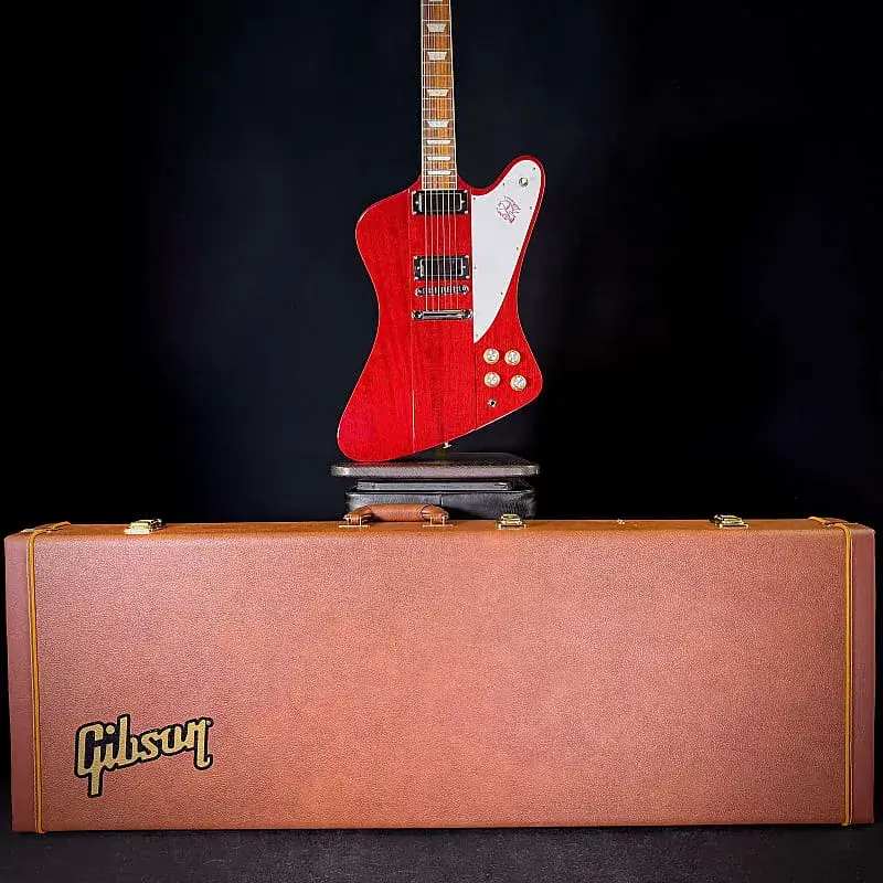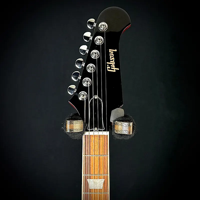 В начале 1965 года оригинальный дизайн Firebird прошел через несколько различных вариантов. Одним из значительных изменений было изменение формы головки грифа на «Non-Reverse». В отличие от оригинального дизайна Reverse Firebird, который имел двухслойную головку грифа с фанерой из падуба, новая головка была плоской, напоминая клюв утконоса. Firebird в стиле Platypus оснащался шестью колками в линию, в отличие от колков в стиле банджо, использовавшихся на предыдущих моделях Firebird. Firebird Platypus отдает дань редким переходным моделям. Гитара имеет корпус из махагони с вклеенным грифом (set neck) и внешне напоминает традиционный корпус Reverse Firebird с цельным грифом. Махагониевый гриф имеет быстрый профиль SlimTaper и грифовую накладку из палисандра с радиусом 12”, 22 средне-джамбо ладом и акриловыми трапециевидными инкрустациями, а также оснащен головкой грифа в стиле Platypus с порожком Graph Tech и колками Grover Mini Rotomatic. Головка грифа в стиле Platypus была слегка изменена, чтобы обеспечить прямое натяжение струн, что снижает трение и улучшает стабильность настройки. Другие концы струн проходят через мост Nashville Tune-O-Matic для точной интонации и надежно закреплены алюминиевым хвостовым стержнем Stop Bar для выдающегося сустейна. Firebird - один из самых узнаваемых дизайнов электрогитар, а Firebird Platypus выводит эту легендарную гитару на новый уровень благодаря своему уникальному внешнему виду. Его звук так же уникален благодаря двум четко артикулированным и исторически точным мини-хамбакерам Firebird. Они оснащены магнитами Alnico 5 и способны выдавать звучание с почти звонким, колокольным тембром при чистой игре, а также отличные рок- и блюзовые тона, которые легко пробиваются в миксе при высокой мощности. Индивидуальные регуляторы громкости и тембра позволяют еще больше настраивать звук, а защитная накладка грифа украшена легендарной тисненной графикой Firebird. В комплект также входит жесткий футляр Gibson.