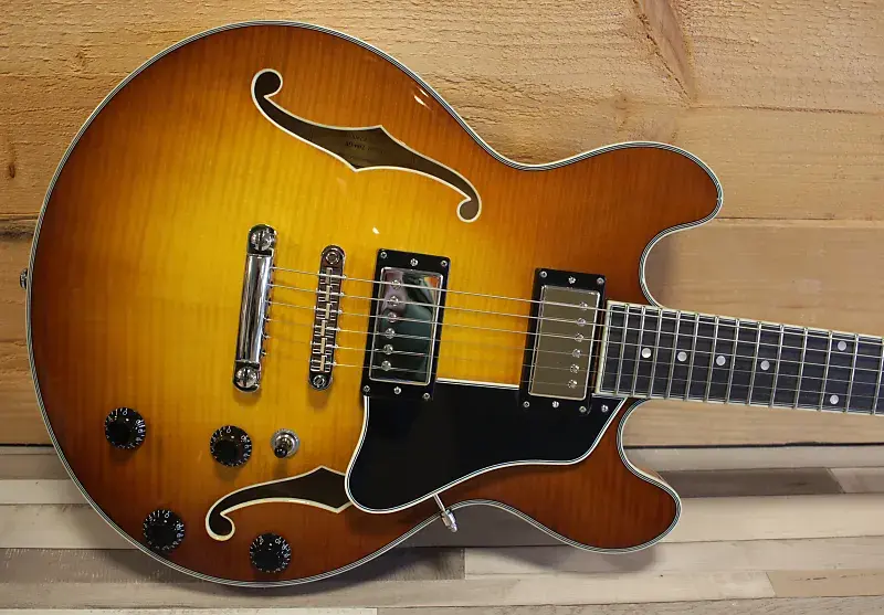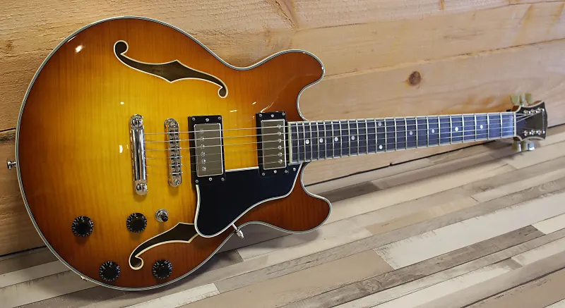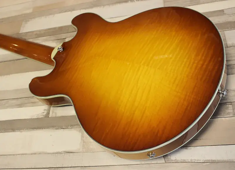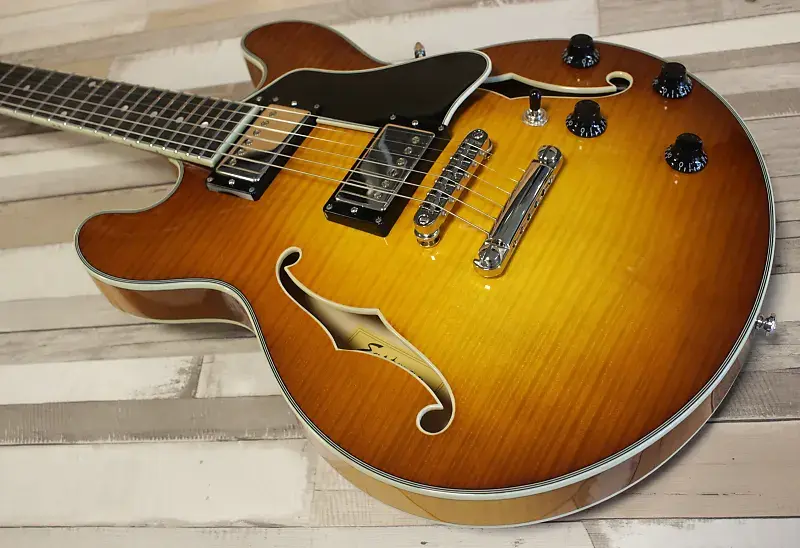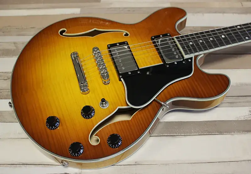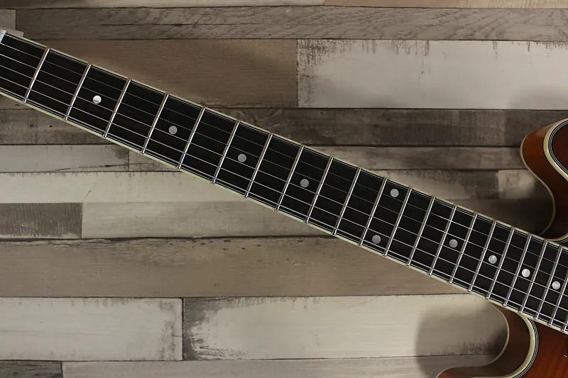 Кроме нескольких гитар в стиле 335, коллекция Thinline от Eastman также предлагает меньшую гитару в стиле 339. Модель T484 имеет полый корпус с центральным блоком и во многом напоминает своего старшего брата, T486. Благодаря меньшему корпусу T484 удобно держать и она немного легче, но - конечно - звучит иначе; звук более прямой и острый, и кажется менее «воздушным», просто потому что большая часть корпуса по сравнению с размером выполнена из массива. Отлично подходит для рок-музыкантов, которым нужно пробиваться в миксе на высоких уровнях усиления, но при этом остается мягкой и теплой для блюза и джаза, особенно на звукоснимателе у грифа. Действительно универсальная гитара.