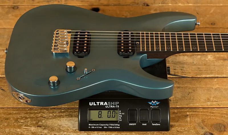 В ней используется предпочитаемая Аароном порода дерева для корпуса - басвуд, в сочетании с уже легендарной грифовой частью из венге от Schecter. Эта красивая семиструнная гитара оснащена фиксированным мостом Hipshot 7-String Fixed Bridge для мощных, перкуссионных риффов.