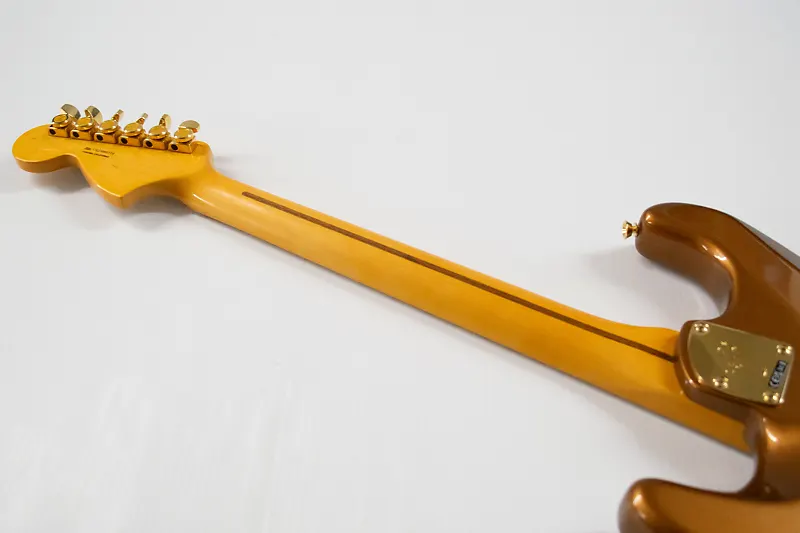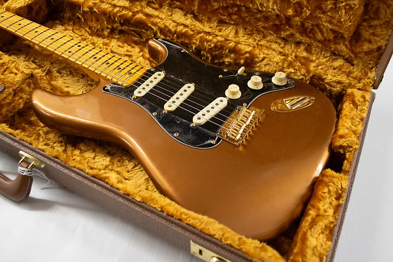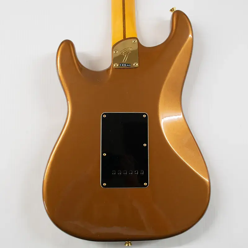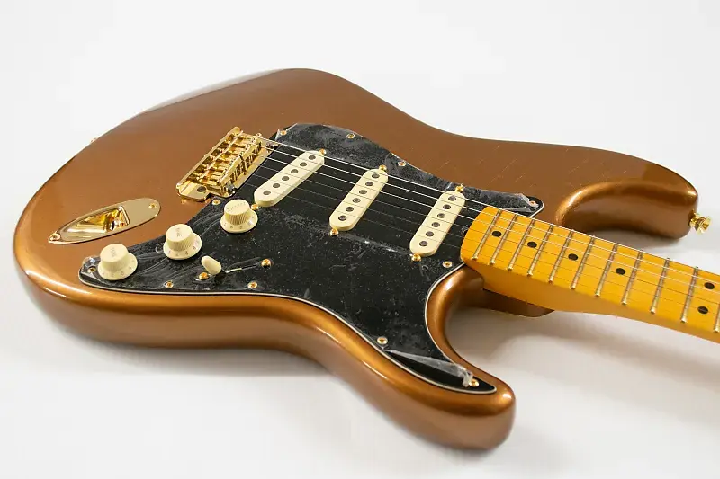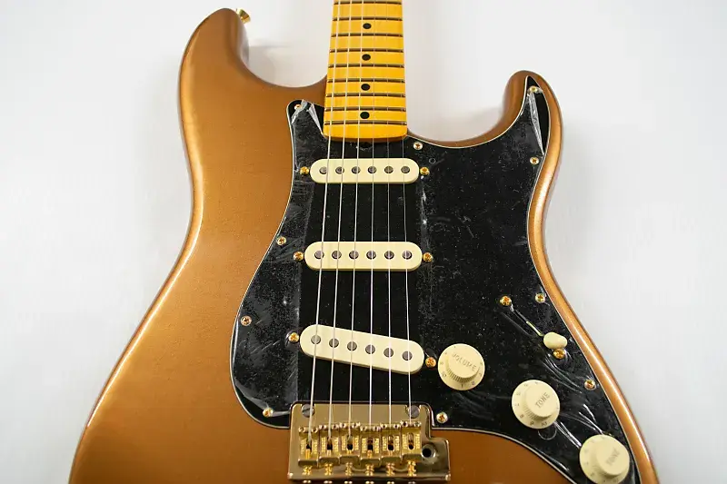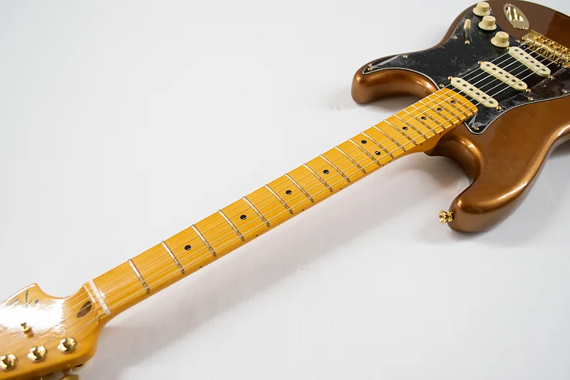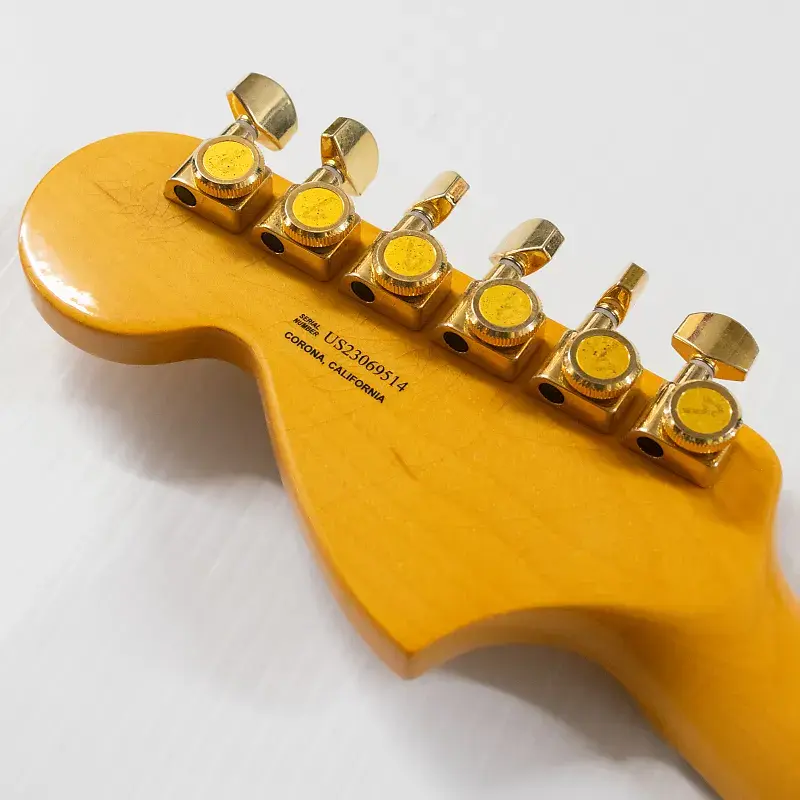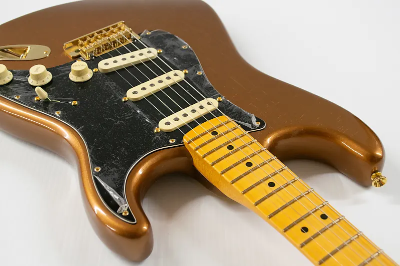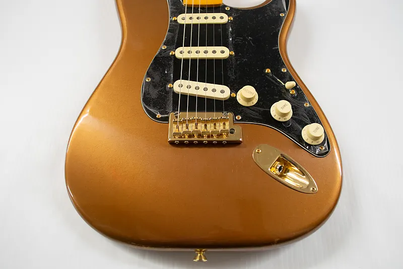 Эта сияющая гитара была создана для воспроизведения тонов и передачи живой души Бруно Марса. Fender знали, что имеют ресурсы для создания достойного инструмента, который понравится не только многочисленным фанатам Марса, но и обычным певцам и авторов песен. От знакомого и проверенного временем корпуса Stratocaster до удобной шеи Custom “C”, сигнатурная Stratocaster Бруно Марса - это легко играющая гитара, которая наверняка порадует. С кленовой накладкой на грифе Fender оснастили этот инструмент составным радиусом от 9,5 до 12 дюймов и 21 средне-джамбо ладами из нержавеющей стали. Другие особенности, такие как кость для верхнего порожка, люксовая отлитыe запираемые колки, синхронизированный тремоло на 2 точки с выбрасывающейся тремоло-ручкой и седла из изогнутой стали обеспечивают этой Strat исключительное звучание. Между тем, антикварная золотая фурнитура и отделка нитроцеллюлозным лаком создают потрясающий внешний вид, который идеально дополняет уникальный цвет этой Strat!