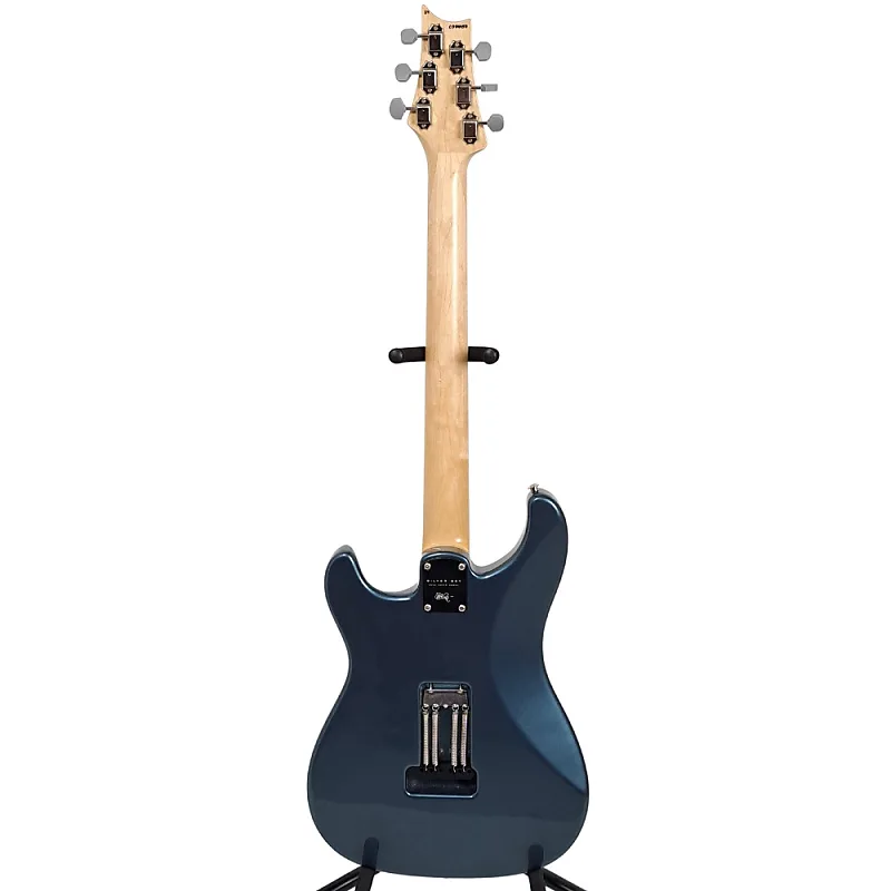 Некоторые из Более отличительными характеристиками являются форма головки грифа, колки, гриф и накладка на гриф, мост и звукосниматели с электроникой. Форма головки грифа основана на фирменном дизайне PRS, но перевернута, чтобы соответствовать стилю игры Мейера и при этом сохранять одинаковую длину струны за порожком, что облегчает настройку. Колки выполнены в традиционном винтажном стиле с закрытой задней крышкой, но с замковой системой PRS. Форма грифа смоделирована по образцу винтажных инструментов 1963/1964 годов, а радиус накладки грифа составляет 7,25 дюйма. В тот момент, когда ваша рука охватывает этот гриф, он сразу ощущается правильно. Как и колки, стальной тремоло использует классический дизайн, но включает рычаг тремоло PRS и винты с ножевым краем третьего поколения. Мост на Silver Sky установлен заподлицо с корпусом в нейтральном положении, так что тремоло-мост опускает только высоту тона. Сохраняя контакт моста с корпусом, сама гитара акустически громче, что улучшает соотношение сигнал/шум для сингловых звукоснимателей. звукосниматели. Одинарные звукосниматели 635JM звучат очень округло и полно, с музыкальными верхами, которые никогда не звучат режуще или дерзко.