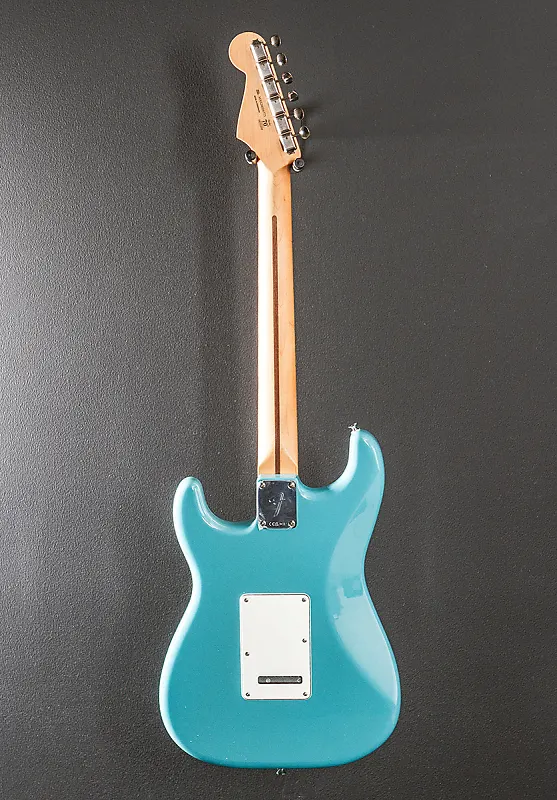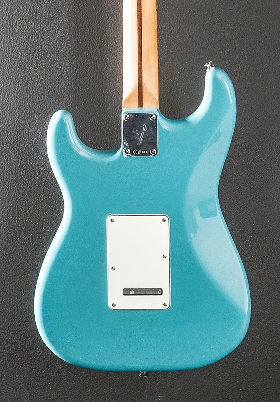 Aquatone Blue, Сделано в Мексике, глянцевая полиэфирная отделка корпуса, корпус из ольхи, современная шейка из клена формы C с радиусом 9,5" и гриф из клена с нейтрально-джамбо ладами, длина мензуры 25,5", ширина верхнего порожка 1,650", звукосниматели серии Player alnico 5 single coil, 5-позиционный переключатель с основным регулятором громкости, регулятором тембра 1. (звукосниматели на грифе/среднем положении) и регулятором тембра 2. (звукосниматель на бридже), двухточечное синхронизированное тремоло с изогнутыми стальными седлами, тюнеры Fender ClassicGear, вес 7,8 фунтов, футляр не входит в комплект.