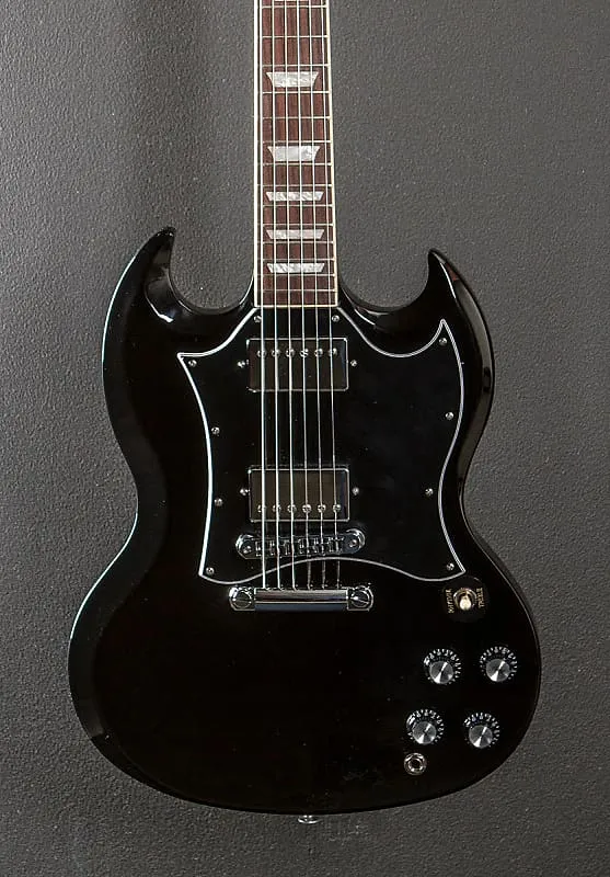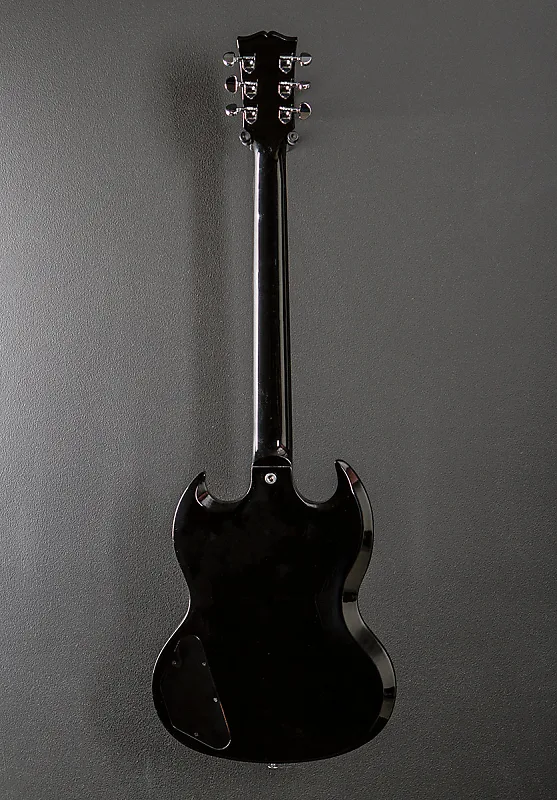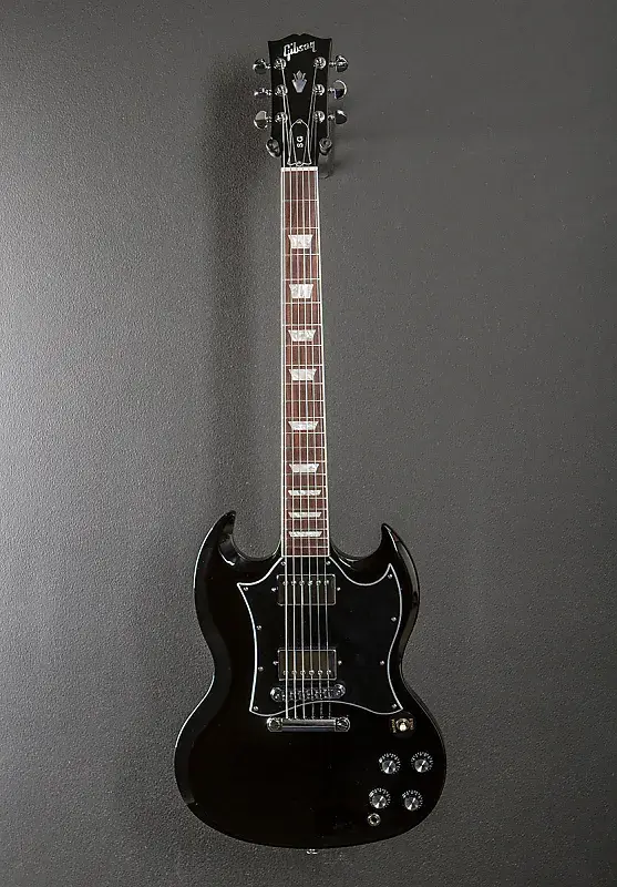 "Gibson SG Standard сохраняет классический вид и характеристики, присущие моделям SG конца 60-х годов, за которыми охотятся многие. Шея из махагони с округлым профилем, гриф из палисандра с окантовкой, соединение грифа с корпусом типа long tenon на 19-м ладу и корпус из цельного махагони обеспечивают основу для продолжительного звучания. Звукосниматели 490R и 490T Alnico II дают необходимую мощность. Черный, 5-слойный, полноразмерный пикгард выделяет этот SG Standard среди других... по-настоящему универсальная классика."