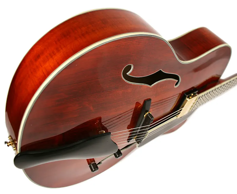 гитаристЭта модель является отличным выбором для музыкантов, ищущих стильный, но в то же время надежный инструмент, способный воспроизводить классические джазовые тона на высокой громкости. Удобное 17-дюймовое тело свободно располагается на коленях, а встроенный звукосниматель предотвращает появление обратной связи. Эта гитара настроена с струнами D'Addario калибра 12 и довольно низким грифом с высотой струн 2 мм. Тем не менее, этот инструмент хорошо работает с различными типами настроек, включая традиционный бибоп (струны калибра 14 и очень низкий гриф) и свинг (более высокий гриф).