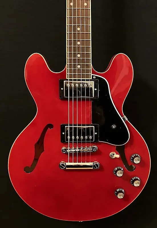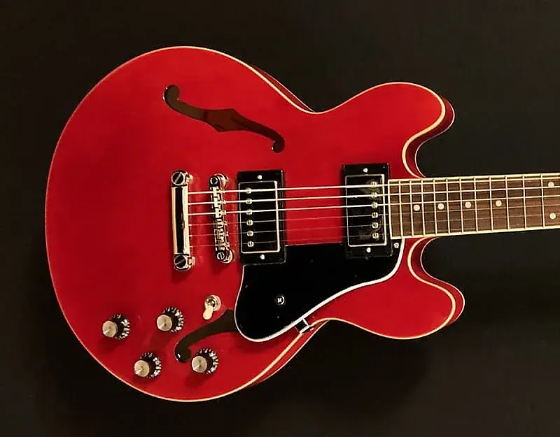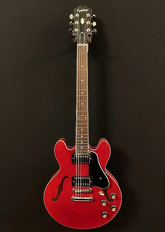Вишня, полуполый многослойный корпус из клена с кленовым центральным блоком, закругленный гриф из красного дерева в форме буквы C, накладка из индийского лавра с переплетенным радиусом 12 дюймов с инкрустациями в виде жемчужных точек и средними ладами джамбо, длина мензуры 24,75 дюйма, ширина порожка 1,69 дюйма, Epiphone Alnico Классические датчики Pro для бриджа и грифа, 3-позиционный тумблер с регуляторами громкости и тембра для каждого датчика, бридж и задняя стамеска Epiphone LockTone tune-o-matic, колки Grover Rotomatic, вес 3,6 кг, чехол в комплект не входит