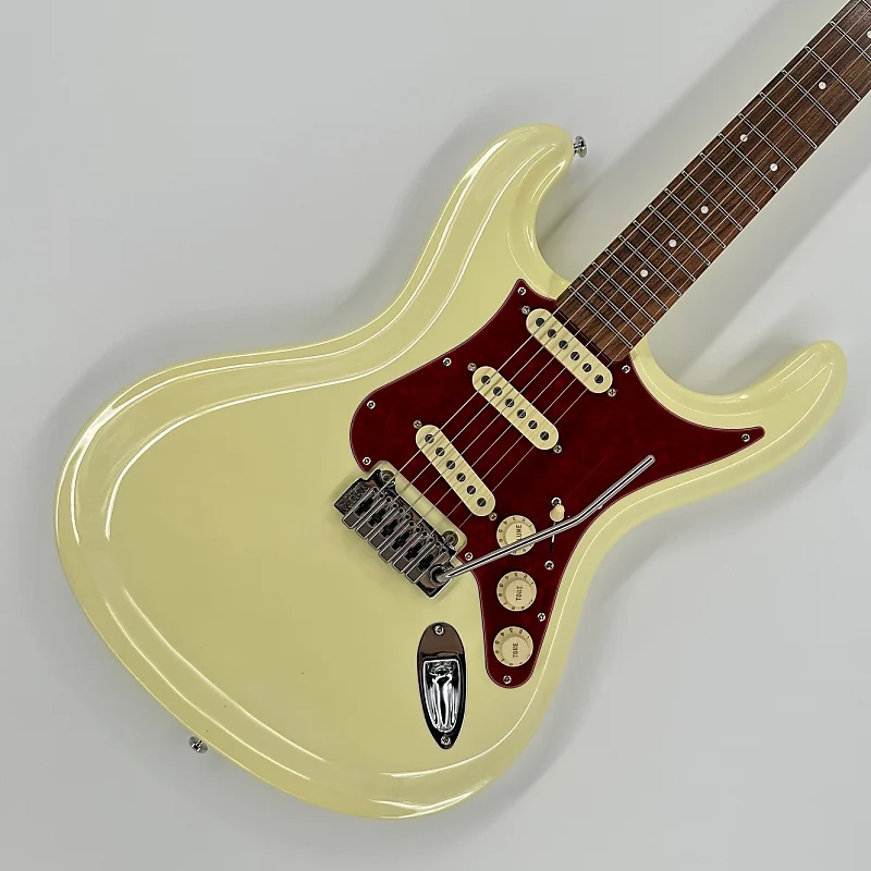 Корпус из липы, гриф из клена, накладка грифа из пау ферро, длина мензуры 25,5'', колки с блокировкой, 3 синглкойла Lindy Fralin Vintage Hot, тремоло-бридж Wilkinson.