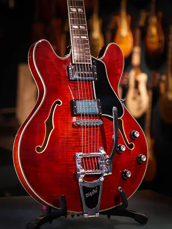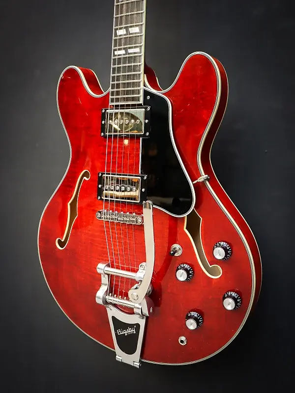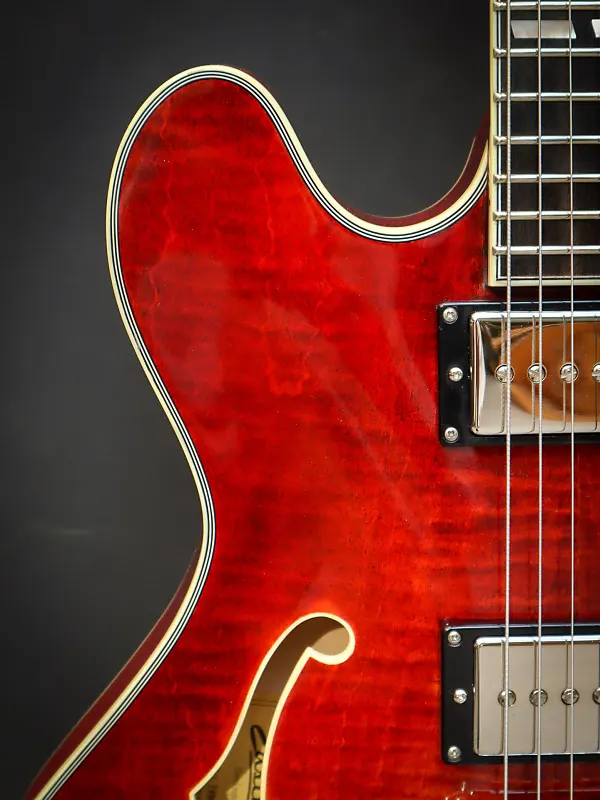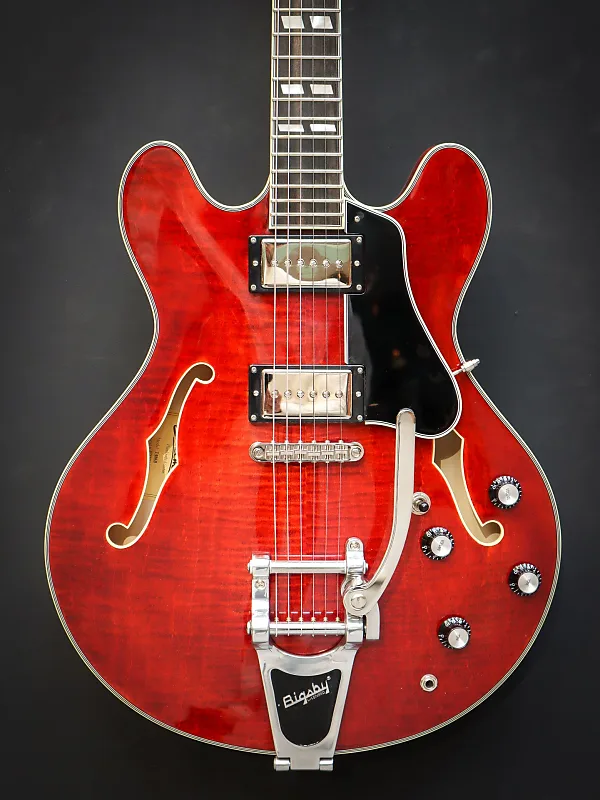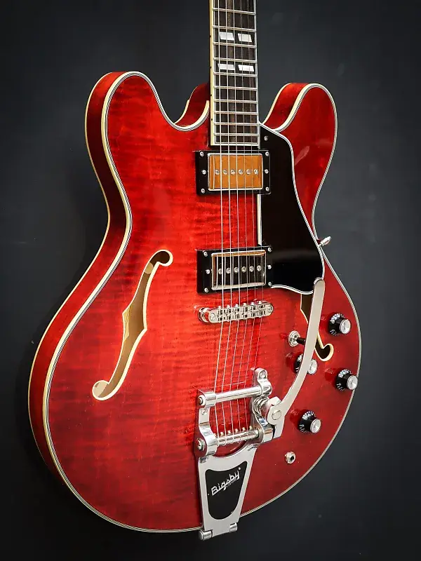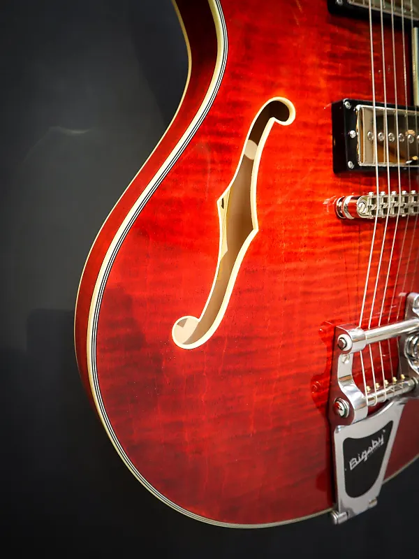 С корпусом из ламинированного клена, эта полуакустическая гитара универсальна, отзывчива, с большим запасом громкости и достаточной мощностью. Эту электрогитару отличает фирменный звук хамбакеров, обеспечиваемый звукоснимателями Seymour Duncan Phat Cats, а также система вибрато Bigsby. Центральный брус предотвращает чрезмерный фидбэк и делает эту полуакустическую гитару немного ближе к гитаре с цельным корпусом.