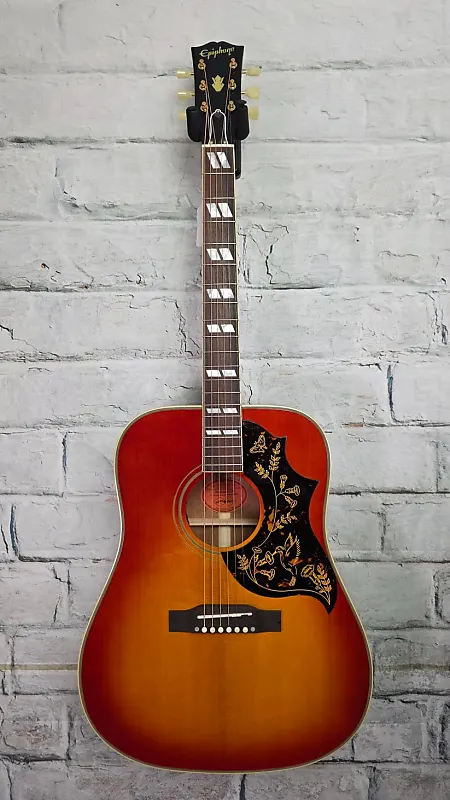 Gibson Hummingbird была впервые представлена в 1960 году и стала первой моделью акустической гитары с квадратным плечом в каталоге Gibson. Он прибыл на заре новой эры в музыке и с тех пор был замечен в руках многих музыкантов, включая Кита Ричардса и Брайана Джонса из Rolling Stones, Эрика Черча, Джей Маскиса, Джо Бонамассу, Джиллиан Уэлч, Тома Йорка и Джонни Гринвуда из Radiohead, Стива Уоринера, Дэна Ауэрбаха и многих других. Большая часть привлекательности колибри заключается в его универсальности. Независимо от того, как вы атакуете этот плоский топ, будь то мягкий перебор пальцев, сильное бренчание или отрыв соло на одну ноту, он выдает прекрасные тона, что делает его идеальным выбором, независимо от того, к каким музыкальным жанрам вы относитесь. Теперь Epiphone в сотрудничестве с Gibson Custom с гордостью представляет переиздание Hummingbird 1960 года, воссозданное Inspired by Gibson Custom те знаковые колибри первых лет выпуска. Эта великолепная акустическая гитара имеет термически состаренную цельную еловую деку, усиленную традиционным резным X-образным подкреплением из цельной ели, распиленной квартально. Корпус и стороны модели 1960 Hummingbird Reissue выполнены из массива махагони. Она обеспечивает теплый, богатый тембр, который прекрасно подходит для широкого спектра музыкальных стилей. Цельный, термически состаренный гриф из махагони длиной 24,75 дюйма имеет округлый профиль и оснащен окаймленной грифовой накладкой из палисандра с 20 стандартными ладами, украшенной инкрустацией из перламутра в виде разделенных параллелограммов.